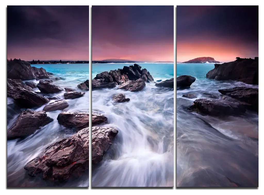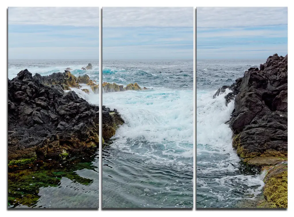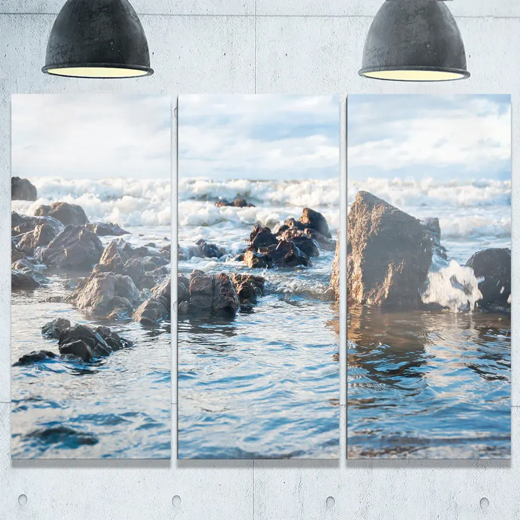 "Sea Foam In Empty Rocky Seaside" Metal Wall Art, 3 Panels, 36"x28"