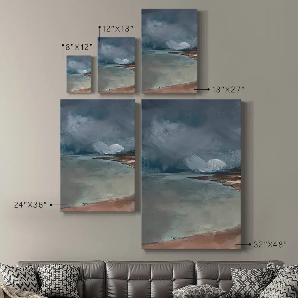 Sea Glass Storm I Premium Gallery Wrapped Canvas - Ready to Hang A premium hand stretched gallery wrapped canvas print created to last. Featuring a beveled a solid wood stretcher bar, each piece comes ready to hand 6 SIZES AVAILABLE 8''X12'' - Overall Size 12''X18'' - Overall Size 18''X27'' - Overall Size 24''x36'' - Overall Size 32''x48'' - Overall Size 40''x60'' - Overall Size Each piece is made to order. Built to Last Each piece comes ready to hang Solid wood stretcher Fade and Water resistant Made domestically