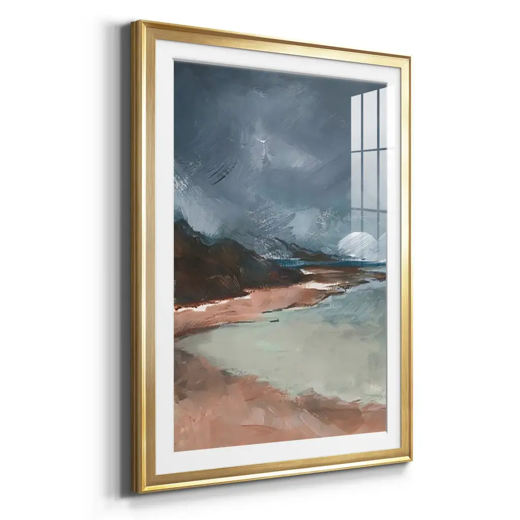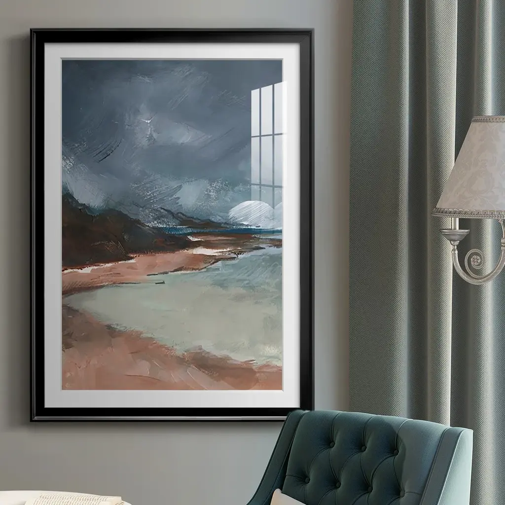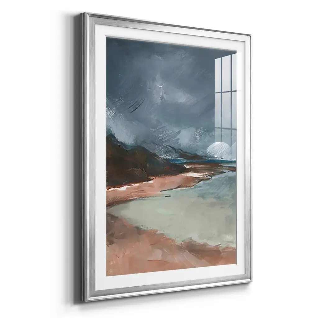 Sea Glass Storm II Premium Framed Print - Ready to Hang A Premium Framed Print created to last. Framed in distressed wood and available in an array of sizes and colors Featuring a beveled a solid wood stretcher bar, each piece comes ready to hand 4 SIZES AVAILABLE 30.5''X42.5'' - Overall Size 26.5'X36.5'' - Overall Size 22.5''x30.5'' - Overall Size 18.5''x24.5'' - Overall Size Each piece is made to order. Each piece comes with hanging hardware. Made in the USA Ready to Hang Giclee Paper Print Acrylic Glass Beveled Matt Board