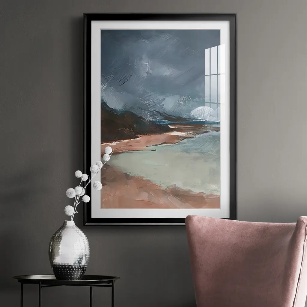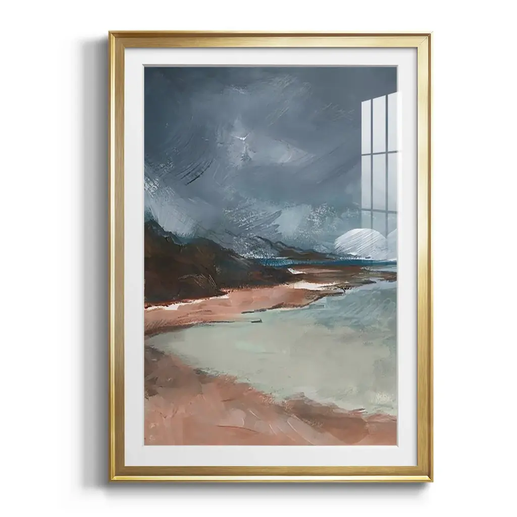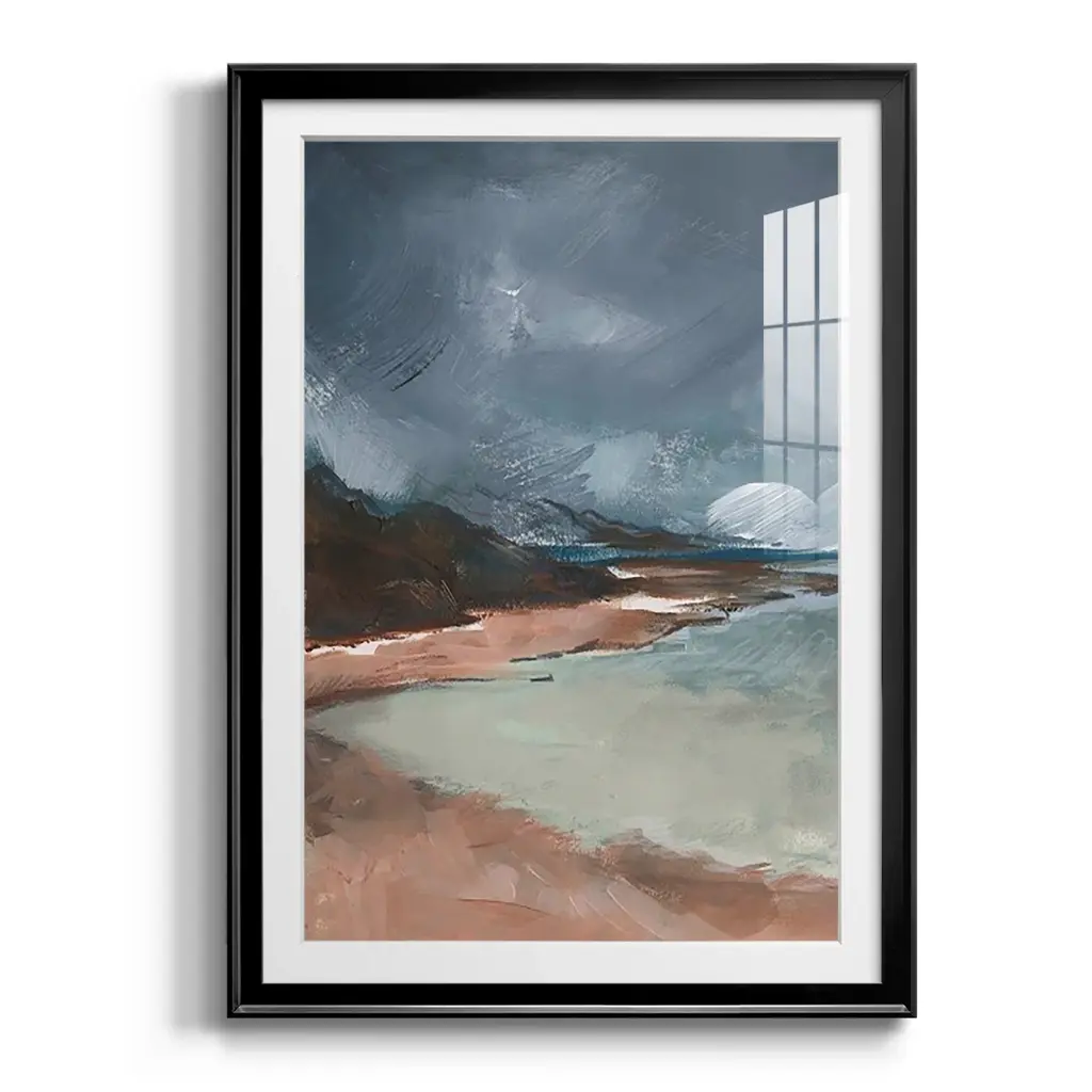 Sea Glass Storm II Premium Framed Print - Ready to Hang A Premium Framed Print created to last. Framed in distressed wood and available in an array of sizes and colors Featuring a beveled a solid wood stretcher bar, each piece comes ready to hand 4 SIZES AVAILABLE 30.5''X42.5'' - Overall Size 26.5'X36.5'' - Overall Size 22.5''x30.5'' - Overall Size 18.5''x24.5'' - Overall Size Each piece is made to order. Each piece comes with hanging hardware. Made in the USA Ready to Hang Giclee Paper Print Acrylic Glass Beveled Matt Board