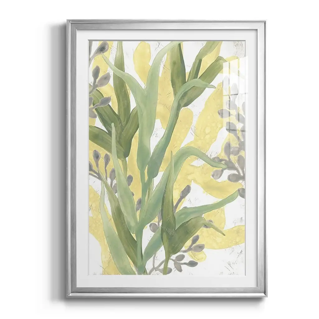 Sea Grass Fresco II Premium Framed Print - Ready to Hang A Premium Framed Print created to last. Framed in distressed wood and available in an array of sizes and colors Featuring a beveled a solid wood stretcher bar, each piece comes ready to hand 4 SIZES AVAILABLE 30.5''X42.5'' - Overall Size 26.5'X36.5'' - Overall Size 22.5''x30.5'' - Overall Size 18.5''x24.5'' - Overall Size Each piece is made to order. Each piece comes with hanging hardware. Made in the USA Ready to Hang Giclee Paper Print Acrylic Glass Beveled Matt Board