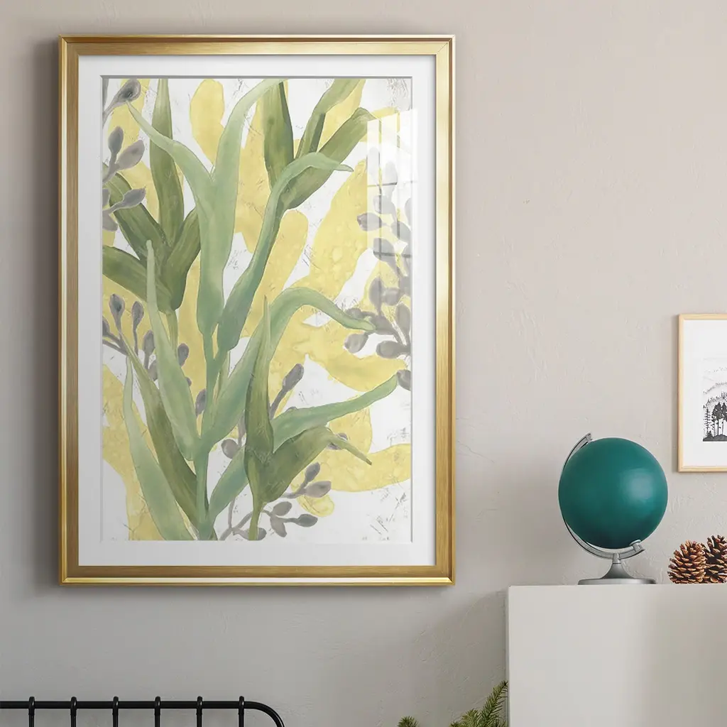Sea Grass Fresco II Premium Framed Print - Ready to Hang A Premium Framed Print created to last. Framed in distressed wood and available in an array of sizes and colors Featuring a beveled a solid wood stretcher bar, each piece comes ready to hand 4 SIZES AVAILABLE 30.5''X42.5'' - Overall Size 26.5'X36.5'' - Overall Size 22.5''x30.5'' - Overall Size 18.5''x24.5'' - Overall Size Each piece is made to order. Each piece comes with hanging hardware. Made in the USA Ready to Hang Giclee Paper Print Acrylic Glass Beveled Matt Board