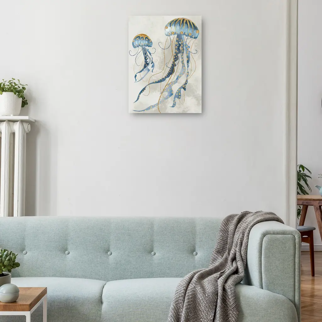 Sea Jellies II By Studio Arts is produced with printing that covers the entirety of the canvas for a sleek and stylish museum-quality look. Our framed prints are made by expert craftsmen who strive to make each canvas the masterpiece that your home deserves. Each of our framed canvas art prints is hand-crafted and made-to-order to give it a high quality and professional appearance. To ensure the clearest, most accurate depiction of the artists' original vision, we print each work of art on bright white polyester canvas, ensuring the most vivid display and precise details. Please note: colors may differ slightly due to variation in monitors. READY TO HANG - Our canvas prints come with preinstalled D-rings attached to the back of the product to make hanging and displaying your new masterpiece a breeze.
