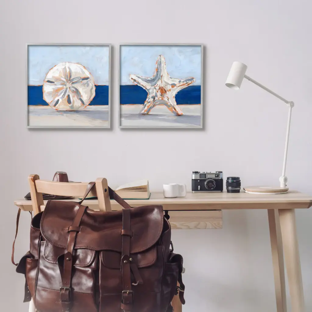 Sea Life Starfish Seashell Painting Beach Marine Animal, 2Pc, Each 17 X 17