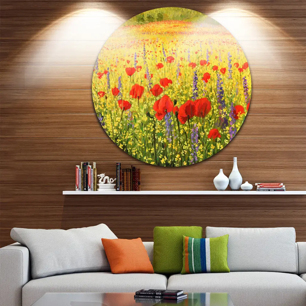 Sea Of Blossom, Landscape Floral Art Round Wall Art, 38"