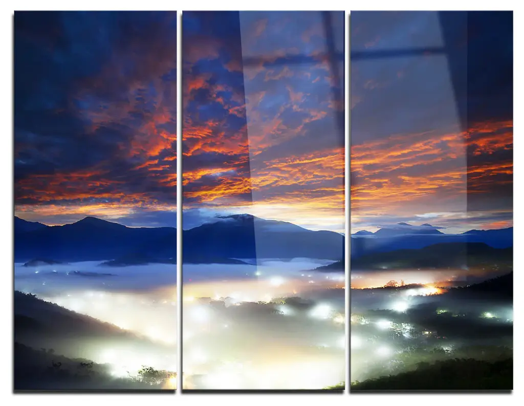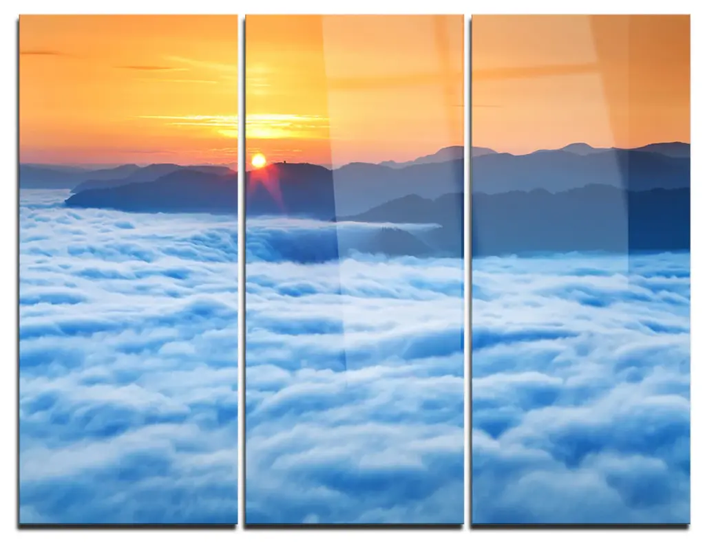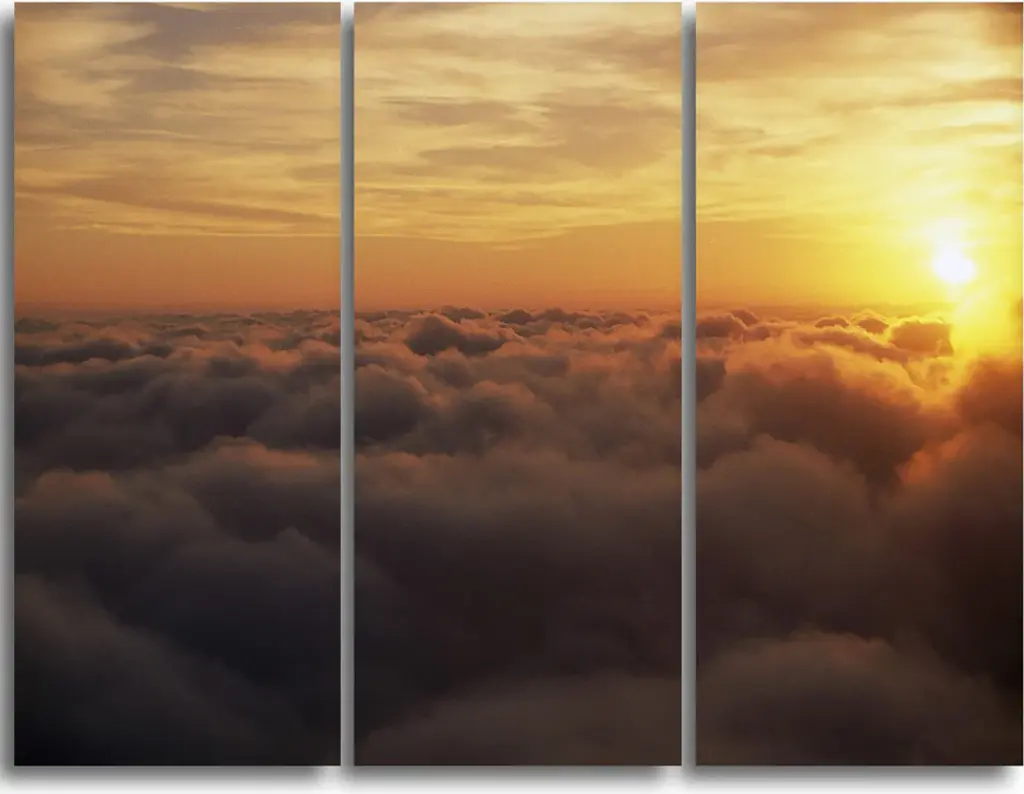 "Sea Of White Fog And Mountains" Landscape Canvas Photo Print, 4 Panels, 48"x28"