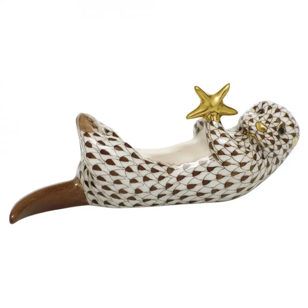 Sea Otter With Starfish Rust 3.75 In L X 1.25 In H