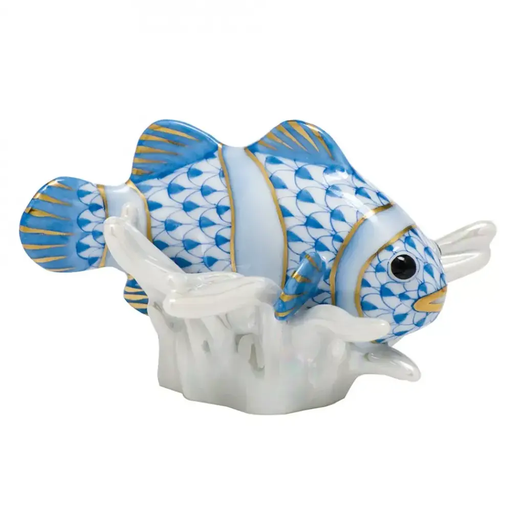 Endearing animals meek and bold, large and small, demure and majestic eagerly await the chance to melt your heart and warm your home. Each is brought to life by the skilled hands of artisans crafting and painting these charming porcelain creatures. The famous fishnet décor adorning many of the animals took form in 1858 when a Herend painter became inspired by a fishscale design he saw on a Chinese porcelain plate and painted a similar pattern onto a rooster figurine to imitate feathers. The rest is history, with the fishnet design now a Herend signature prized worldwide. Now the biggest porcelain manufactory in Europe, Herend was founded in 1826 to produce earthenware in the small Hungarian village for which it was named. At the time, Hungary was flooded with low-cost pottery, but in 1839, Mor Fischer became the Manufactory’s new owner and he decided to focus on producing dinnerware replacement pieces for Europe’s royal families to complement their valuable porcelain patterns from Germany and the Far East. As his client base grew, Fischer commissioned his artists to begin designing dinnerware patterns of their own. Queen Victoria’s 1851 purchase of a large set for Windsor Castle was a milestone, setting the stage for aristocrats throughout Europe to clamor for Herend in their estates. In the 1850s, Herend added meticulously-crafted figurines to its creations. Herend’s trademark fishnet pattern, which is widely recognized and prized as Herend’s signature design, started in 1858 when an artist who was intrigued with a Chinese plate’s fish scale design painted it onto a rooster figurine to imitate feathers.