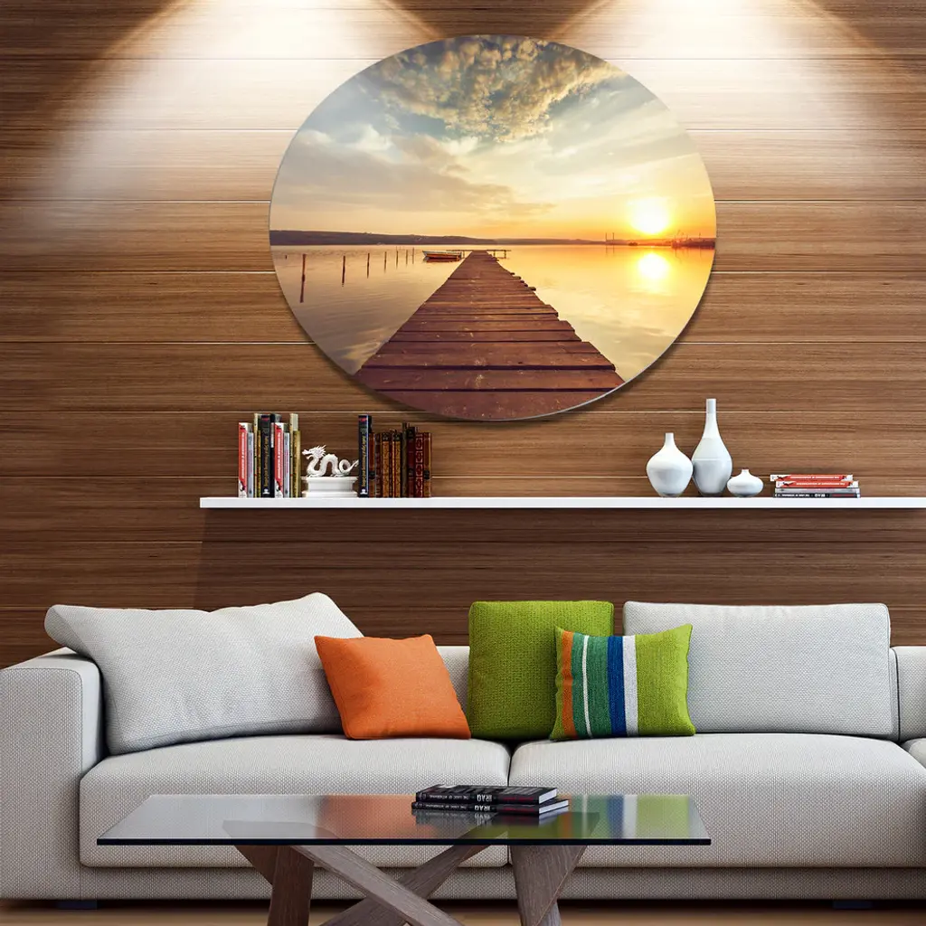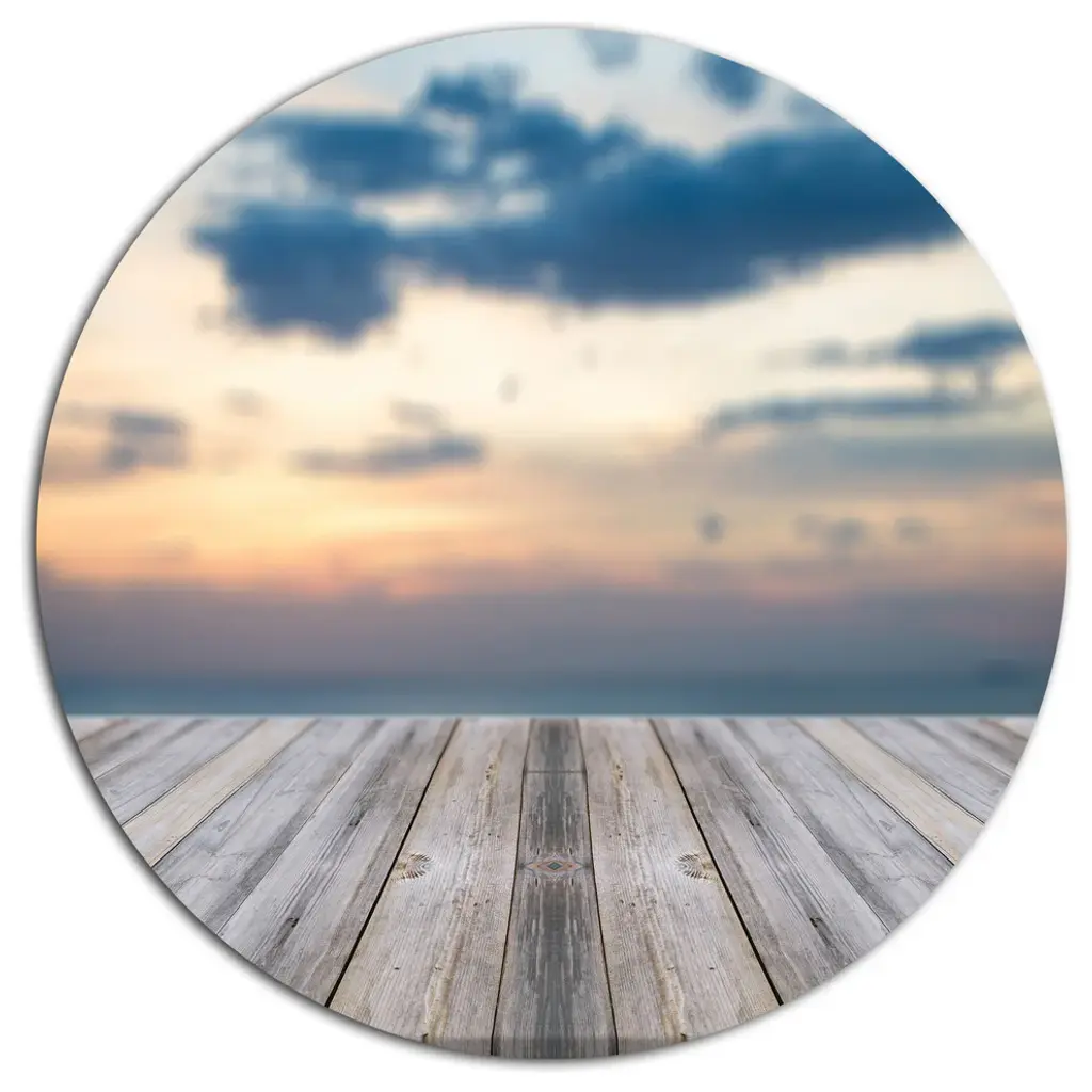 Sea Pier Under Beautiful Cloudscape, Modern Bridge Round Wall Art, 36"