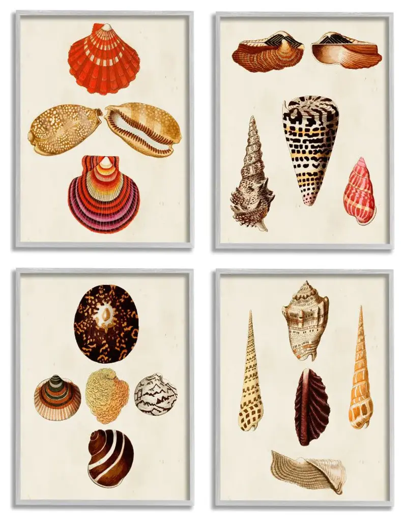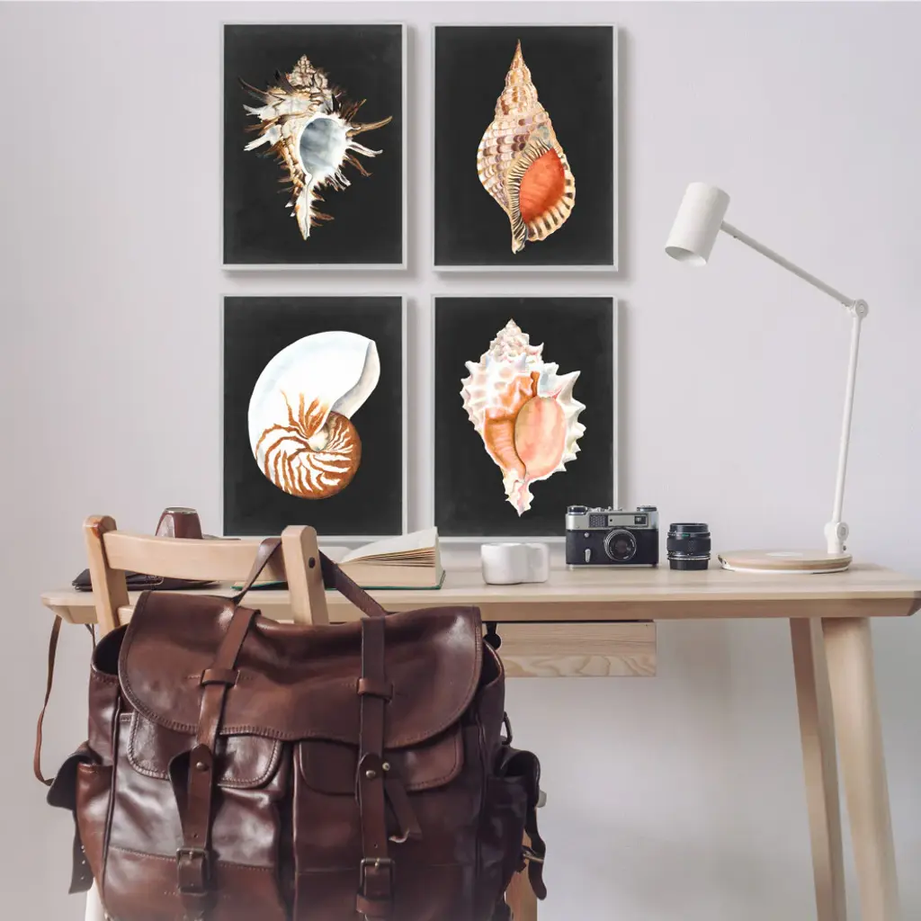 Sea Shell Clam Conch Collection Realistic Illustration , 4Pc, Each 16 X 20