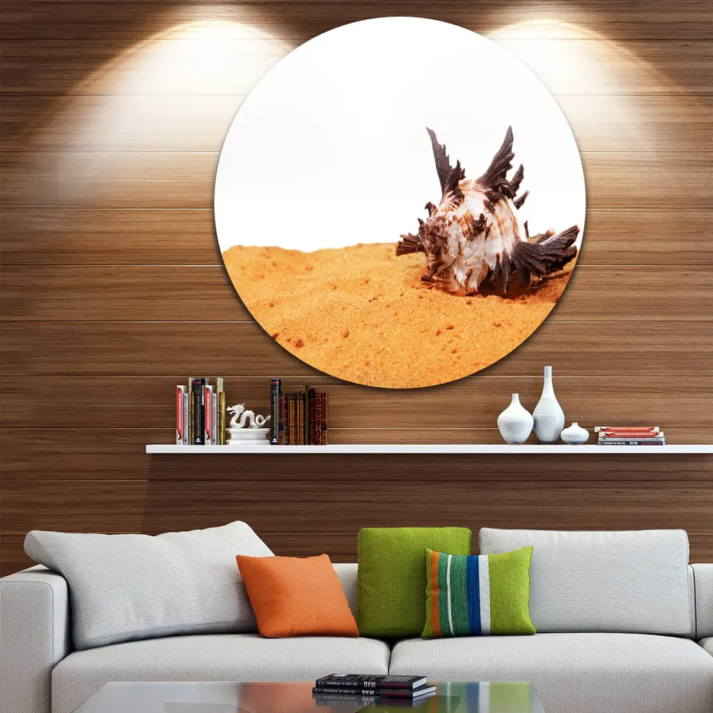 Sea Shells On Sand, Seashore Round Metal Wall Art, 36"