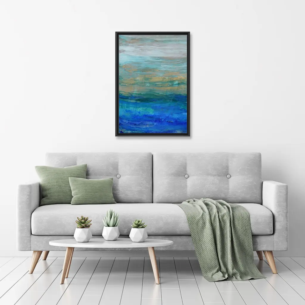 Brushstrokes blend to form a sea of blue and green in this vertical abstract wall art. The decorative Norman Wyatt artwork, 'Sea Spray' will complement your space with its coastal and contemporary aesthetic. This piece is handcrafted in Chattanooga, Tennessee by Ready2HangArt using a locally sourced artist print, with a frame and a rear hanger for simple installation. Offering a wide range of transitional subjects and unique textures, Norman Wyatt's collections will add interest to any modern or contemporary decor.