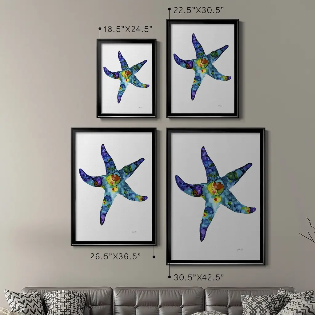Sea Star Premium Framed Print - Ready to Hang A Premium Framed Print created to last. Framed in distressed wood and available in an array of sizes and colors Featuring a beveled a solid wood stretcher bar, each piece comes ready to hand 4 SIZES AVAILABLE 30.5''X42.5'' - Overall Size 26.5'X36.5'' - Overall Size 22.5''x30.5'' - Overall Size 18.5''x24.5'' - Overall Size Each piece is made to order. Each piece comes with hanging hardware. Made in the USA Ready to Hang
