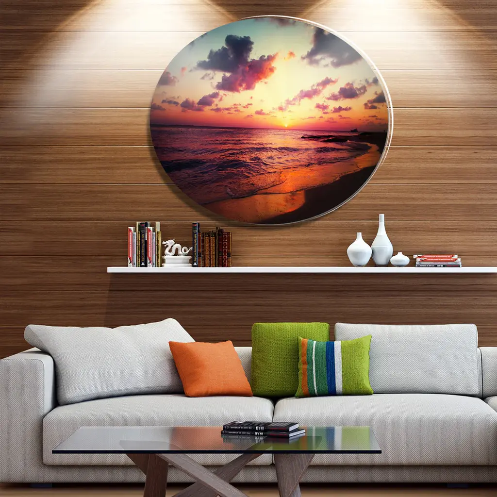 Sea Sunset Landscape View, Seashore Round Metal Wall Art, 11"