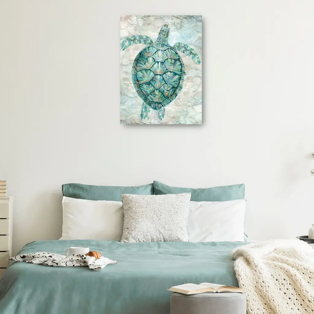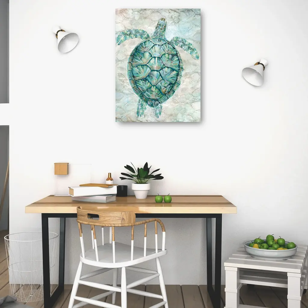 Sea Turtle Mosaic Teal By Studio Arts Canvas Art Print - 18x24