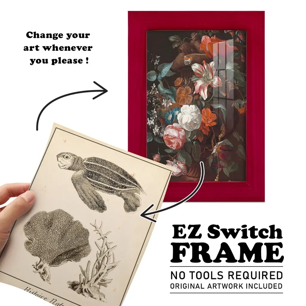 Sea Turtle Study II -EZ SWITCH Framed Print w/glass-Cherry Red A delightful, framed print. Featuring a solid wood frame with real wood glass. This premium print is giclee quality. In addition, every frame features a removable back and table top stand. This allows you to change your art in the future or to just stand the art on a table for a new look. We are sure you'll enjoy our new series of EZ SWITCH Framed Art. Solid Wood Frame Real Glass Removable / Replaceable Art Built in Tabletop Stand Sizes range from 4x6 up to 12x15 - buy just one or pair them up as sets as you see fit.