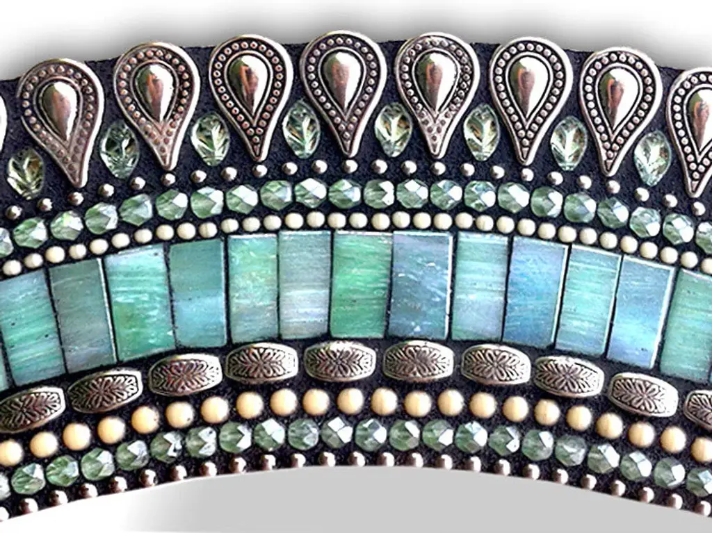 Intricate glass mosaic mirror handmade by artist Angie Heinrich of Zetamari Mosaic Artworks. This mirror features shimmering, hand-shaped glass tiles, beads, and metal that come together to create a soft and soothing jewel for your wall. Shown: 19 in Diameter (Measurement includes the mirror + frame)COLOR PALETTEThe colors of this mirror are soft and airy. The Seafoam glass tiles have streaks of cream and an iridescent surface that sparkle and change with the shifting daylight. Creme and silver accents add to the airy spa-like feel.LEAD TIME:I create each piece by hand when your order is placed. Please allow 1.5 to 3 weeks for me to complete your mirror. MISC DETAILSAll hanging hardware is included. This mirror is surprisingly light-weight and is very easy to hang. Wipe clean with a damp cloth and clean mirror with regular glass cleaner and a lint-free cloth. All pieces are signed by the artist.
