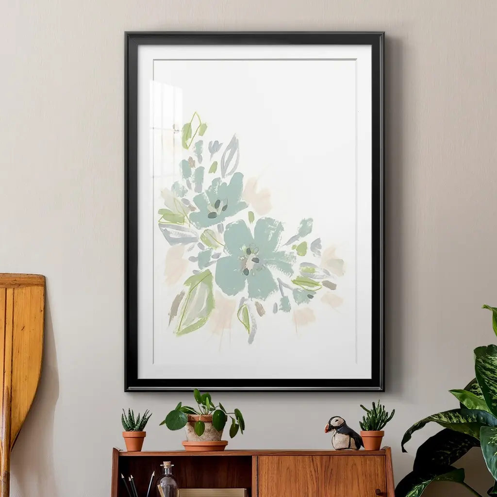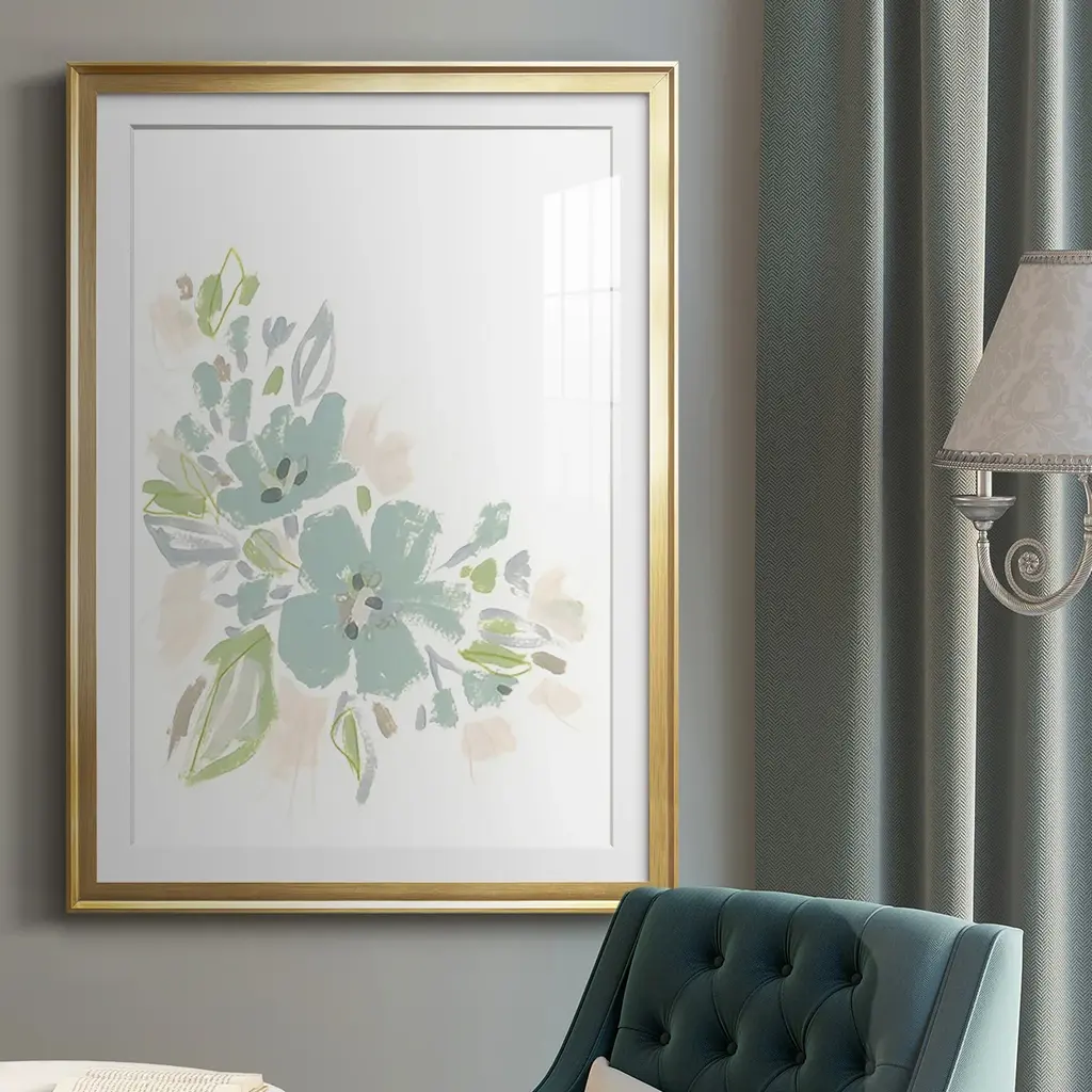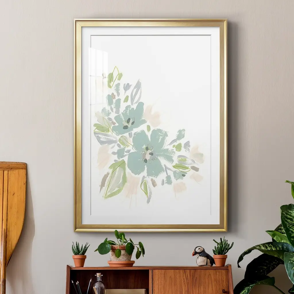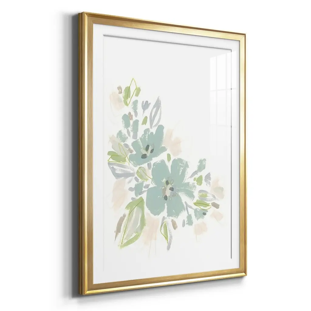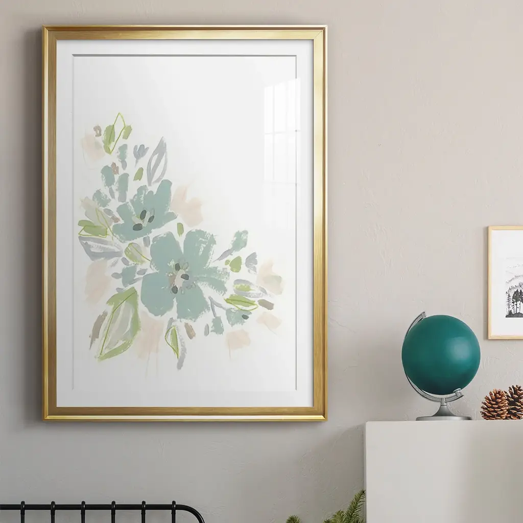 Seafoam Petals I Premium Framed Print - Ready to Hang A Premium Framed Print created to last. Framed in distressed wood and available in an array of sizes and colors Featuring a beveled a solid wood stretcher bar, each piece comes ready to hand 4 SIZES AVAILABLE 30.5''X42.5'' - Overall Size 26.5'X36.5'' - Overall Size 22.5''x30.5'' - Overall Size 18.5''x24.5'' - Overall Size Each piece is made to order. Each piece comes with hanging hardware. Made in the USA Ready to Hang Giclee Paper Print Acrylic Glass Beveled Matt Board