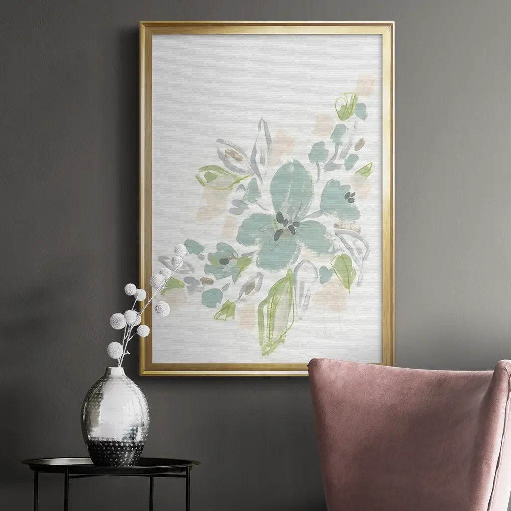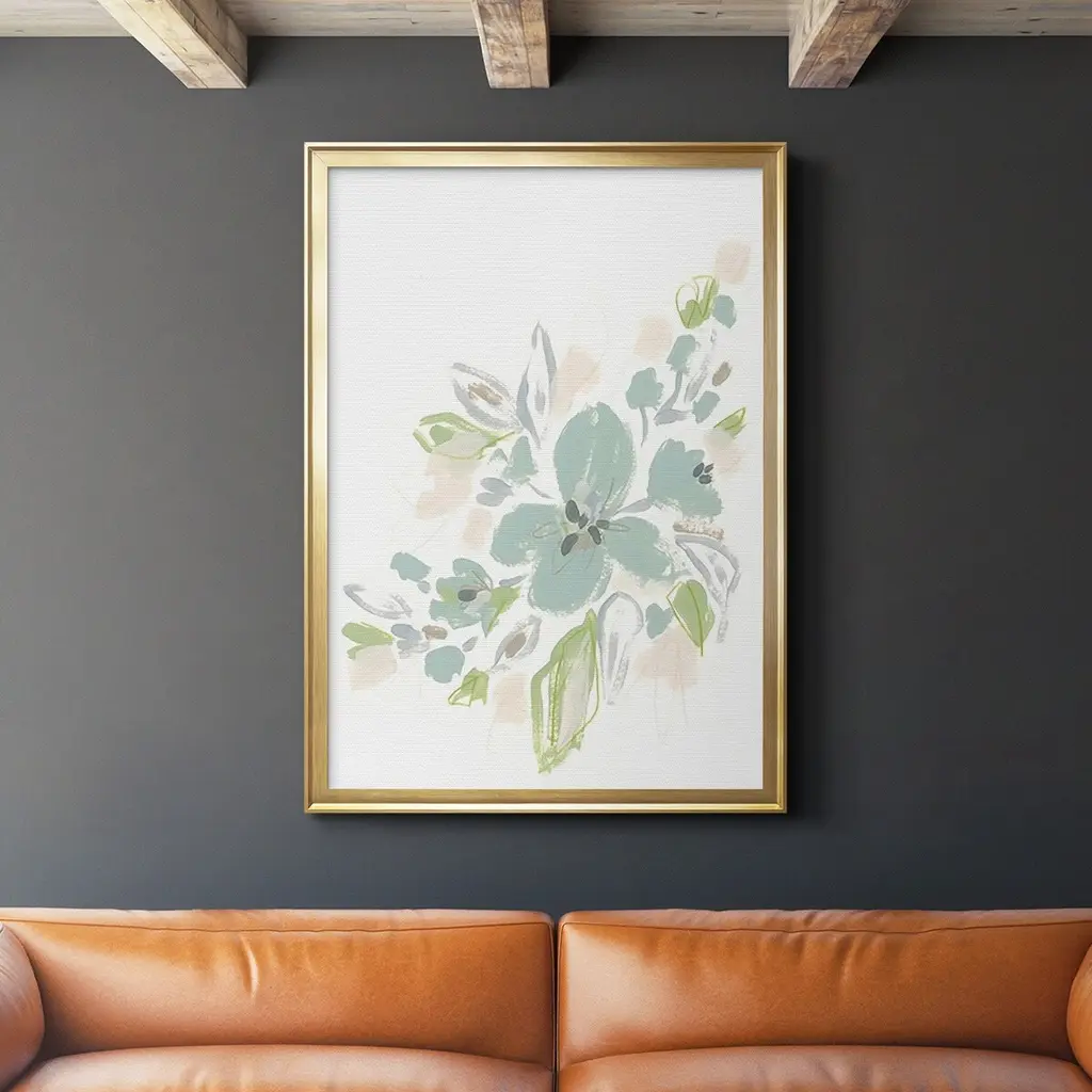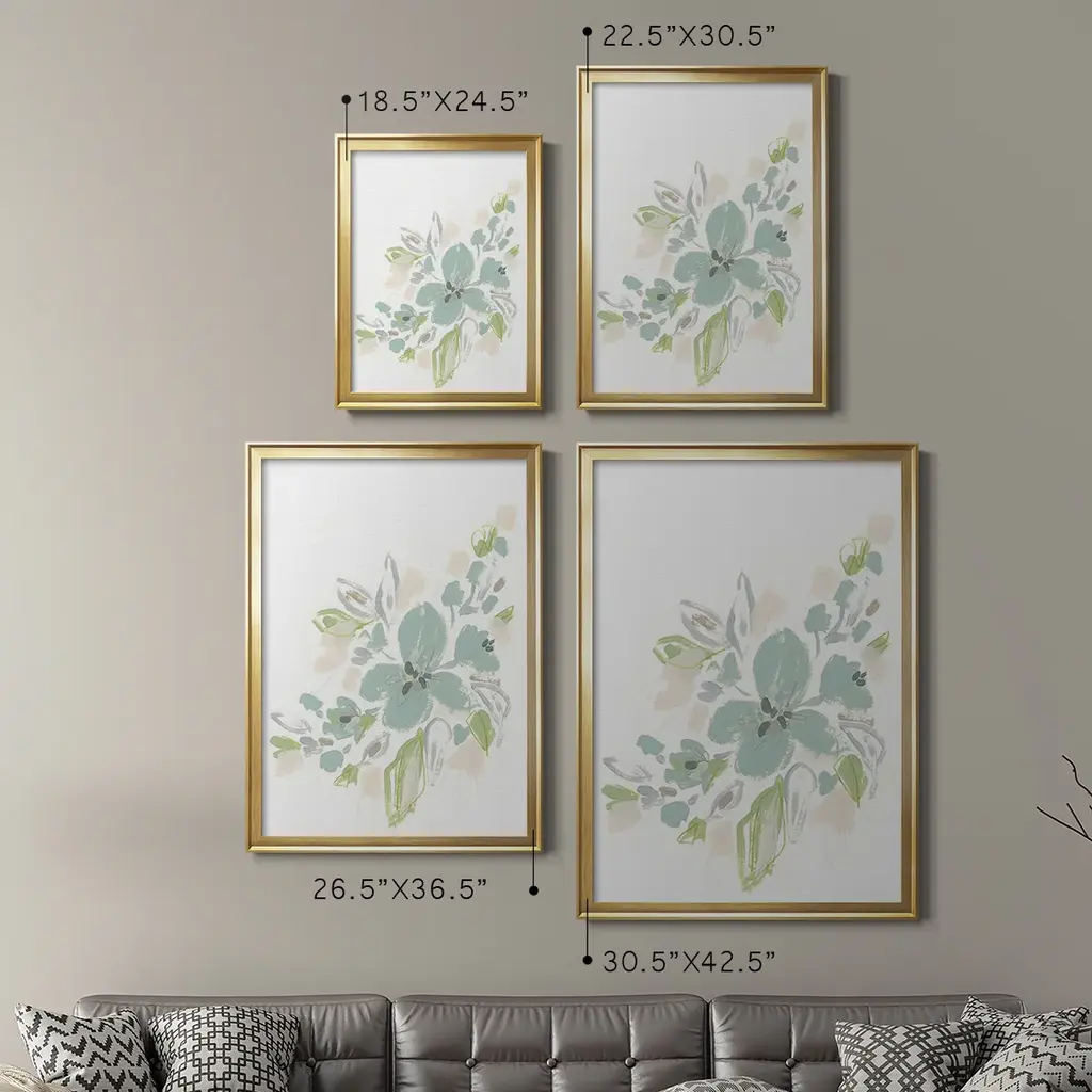Seafoam Petals II Premium Framed Print - Ready to Hang A Premium Framed Print created to last. Framed in distressed wood and available in an array of sizes and colors Featuring a beveled a solid wood stretcher bar, each piece comes ready to hand 4 SIZES AVAILABLE 30.5''X42.5'' - Overall Size 26.5'X36.5'' - Overall Size 22.5''x30.5'' - Overall Size 18.5''x24.5'' - Overall Size Each piece is made to order. Each piece comes with hanging hardware. Made in the USA Ready to Hang