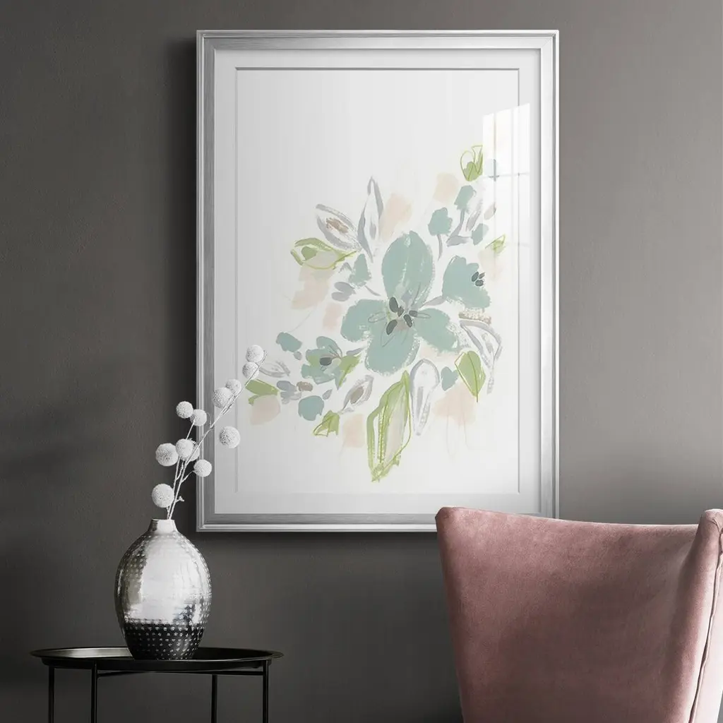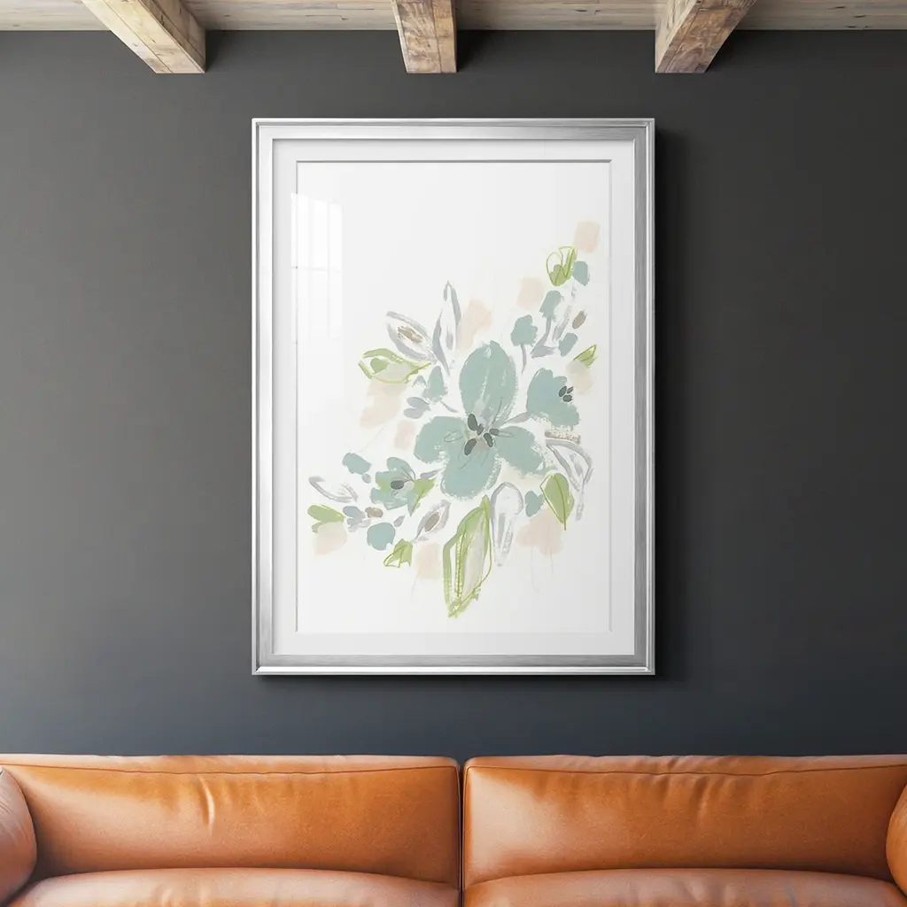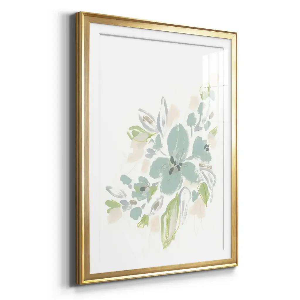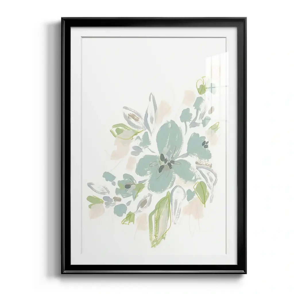 Seafoam Petals II Premium Framed Print - Ready to Hang A Premium Framed Print created to last. Framed in distressed wood and available in an array of sizes and colors Featuring a beveled a solid wood stretcher bar, each piece comes ready to hand 4 SIZES AVAILABLE 30.5''X42.5'' - Overall Size 26.5'X36.5'' - Overall Size 22.5''x30.5'' - Overall Size 18.5''x24.5'' - Overall Size Each piece is made to order. Each piece comes with hanging hardware. Made in the USA Ready to Hang Giclee Paper Print Acrylic Glass Beveled Matt Board