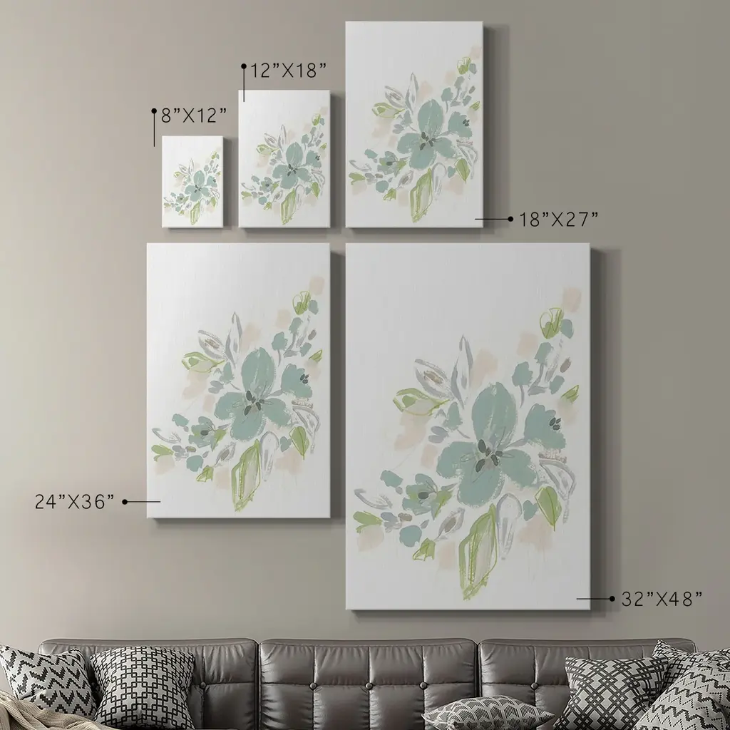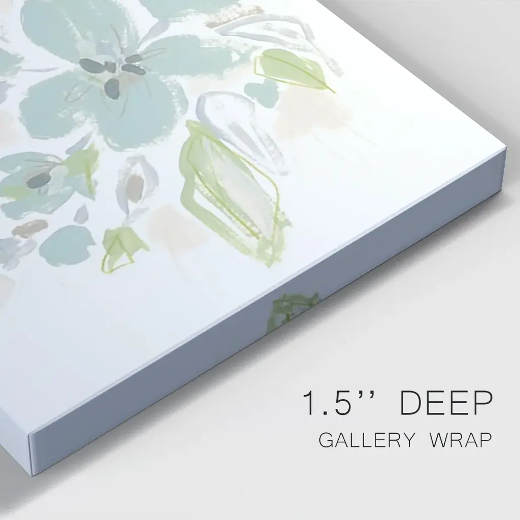 Seafoam Petals II Premium Gallery Wrapped Canvas - Ready to Hang A premium hand stretched gallery wrapped canvas print created to last. Featuring a beveled a solid wood stretcher bar, each piece comes ready to hand 6 SIZES AVAILABLE 8''X12'' - Overall Size 12''X18'' - Overall Size 18''X27'' - Overall Size 24''x36'' - Overall Size 32''x48'' - Overall Size 40''x60'' - Overall Size Each piece is made to order. Built to Last Each piece comes ready to hang Solid wood stretcher Fade and Water resistant Made domestically