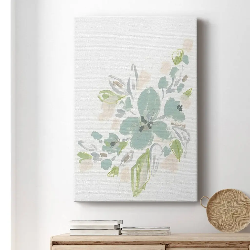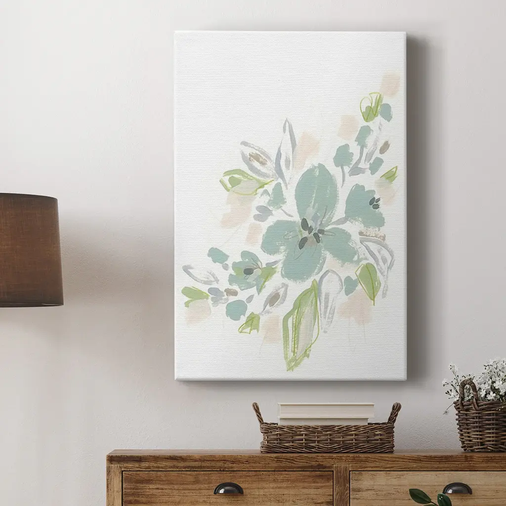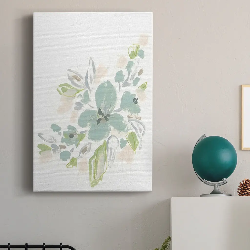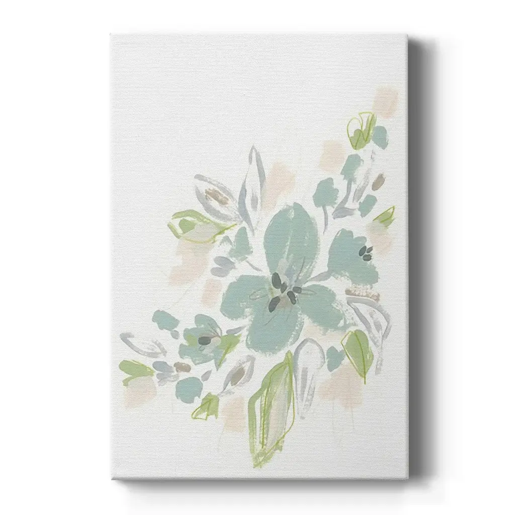 Seafoam Petals II Premium Gallery Wrapped Canvas - Ready to Hang A premium hand stretched gallery wrapped canvas print created to last. Featuring a beveled a solid wood stretcher bar, each piece comes ready to hand 6 SIZES AVAILABLE 8''X12'' - Overall Size 12''X18'' - Overall Size 18''X27'' - Overall Size 24''x36'' - Overall Size 32''x48'' - Overall Size 40''x60'' - Overall Size Each piece is made to order. Built to Last Each piece comes ready to hang Solid wood stretcher Fade and Water resistant Made domestically