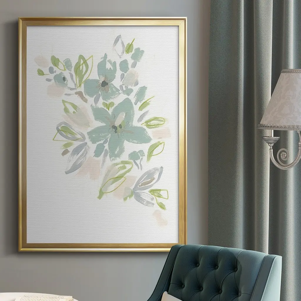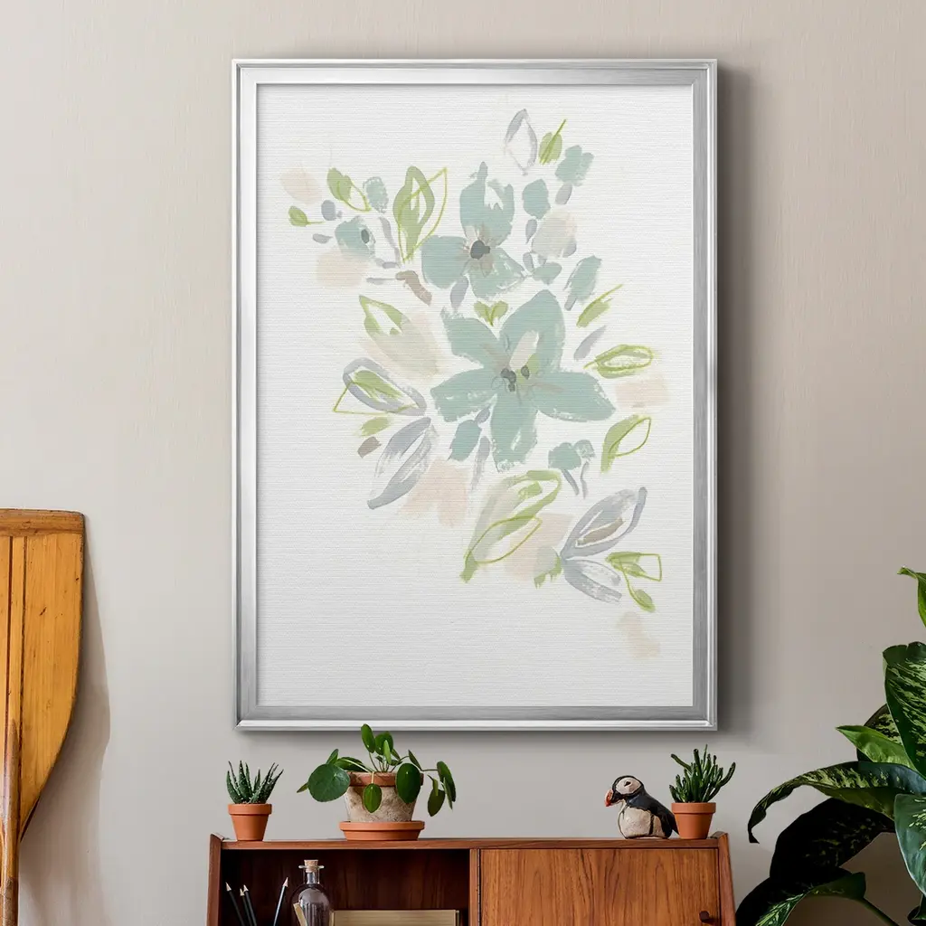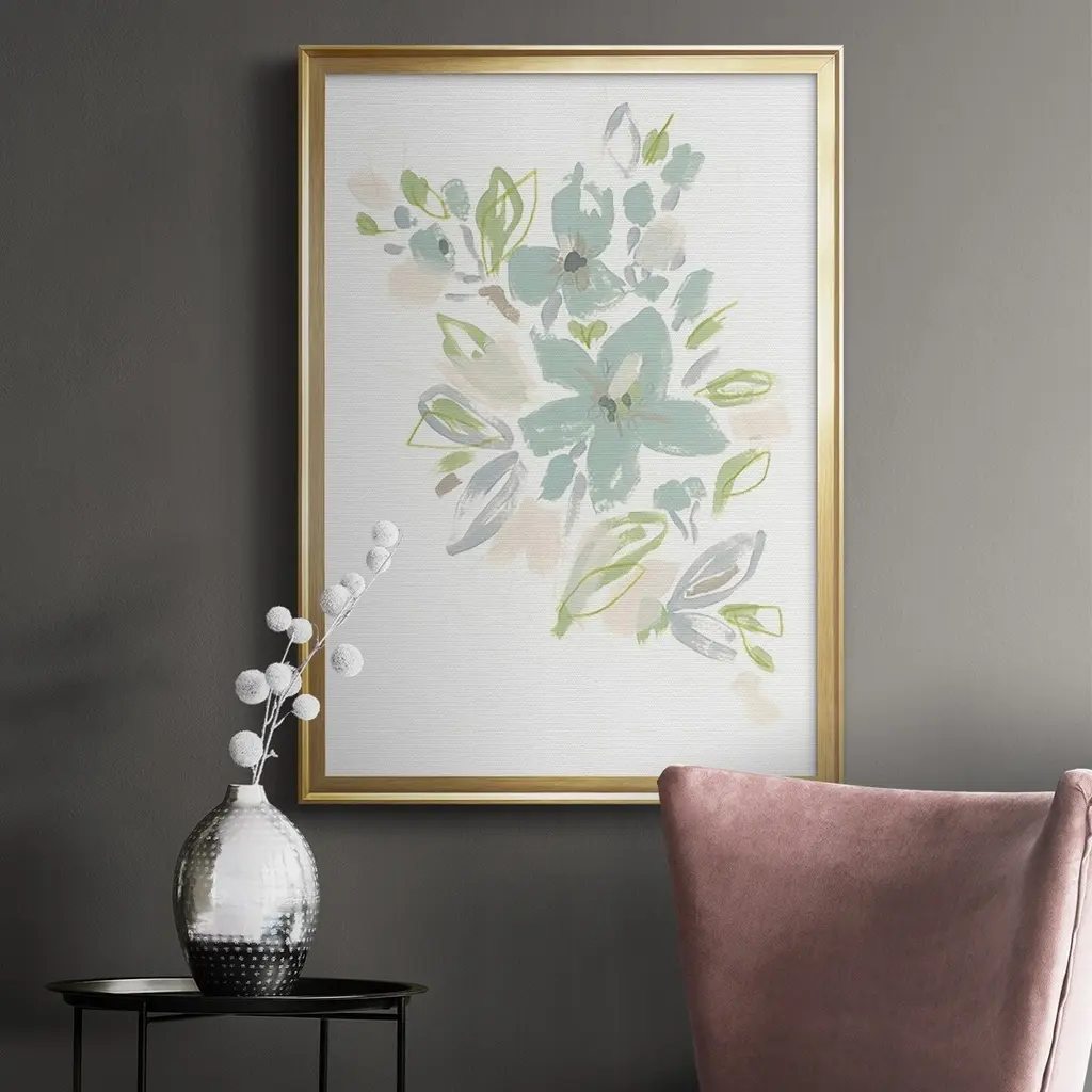 Seafoam Petals IV Premium Framed Print - Ready to Hang A Premium Framed Print created to last. Framed in distressed wood and available in an array of sizes and colors Featuring a beveled a solid wood stretcher bar, each piece comes ready to hand 4 SIZES AVAILABLE 30.5''X42.5'' - Overall Size 26.5'X36.5'' - Overall Size 22.5''x30.5'' - Overall Size 18.5''x24.5'' - Overall Size Each piece is made to order. Each piece comes with hanging hardware. Made in the USA Ready to Hang