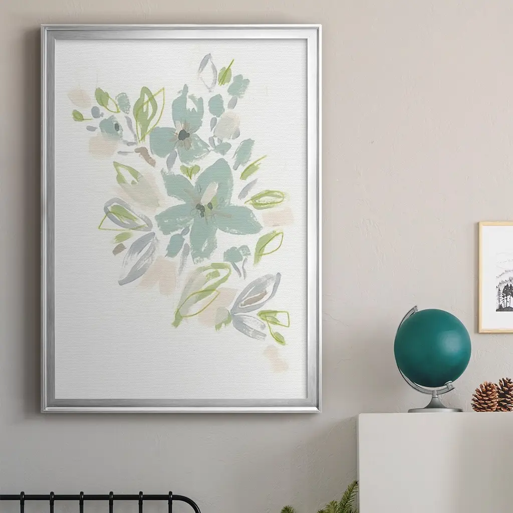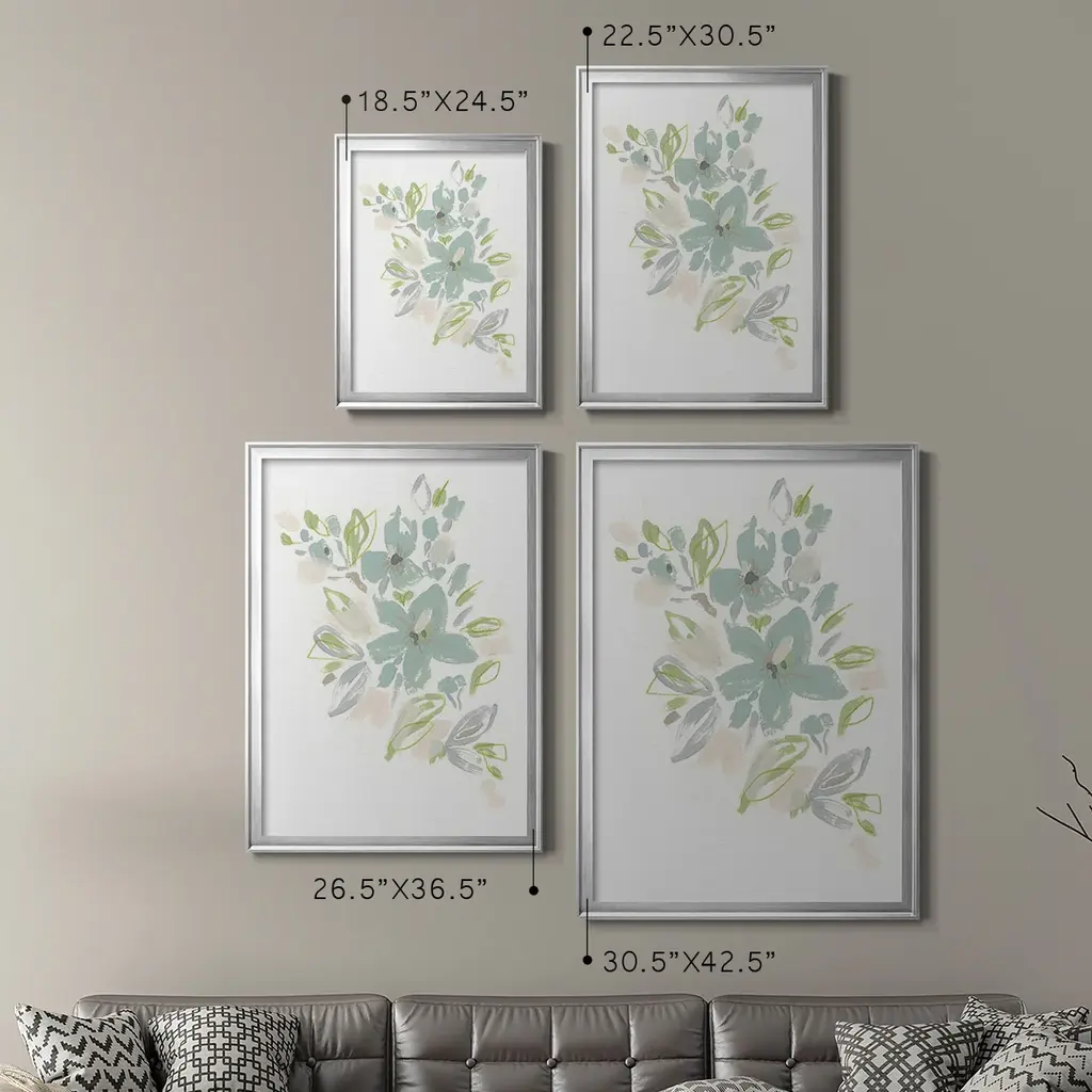 Seafoam Petals IV Premium Framed Print - Ready to Hang A Premium Framed Print created to last. Framed in distressed wood and available in an array of sizes and colors Featuring a beveled a solid wood stretcher bar, each piece comes ready to hand 4 SIZES AVAILABLE 30.5''X42.5'' - Overall Size 26.5'X36.5'' - Overall Size 22.5''x30.5'' - Overall Size 18.5''x24.5'' - Overall Size Each piece is made to order. Each piece comes with hanging hardware. Made in the USA Ready to Hang