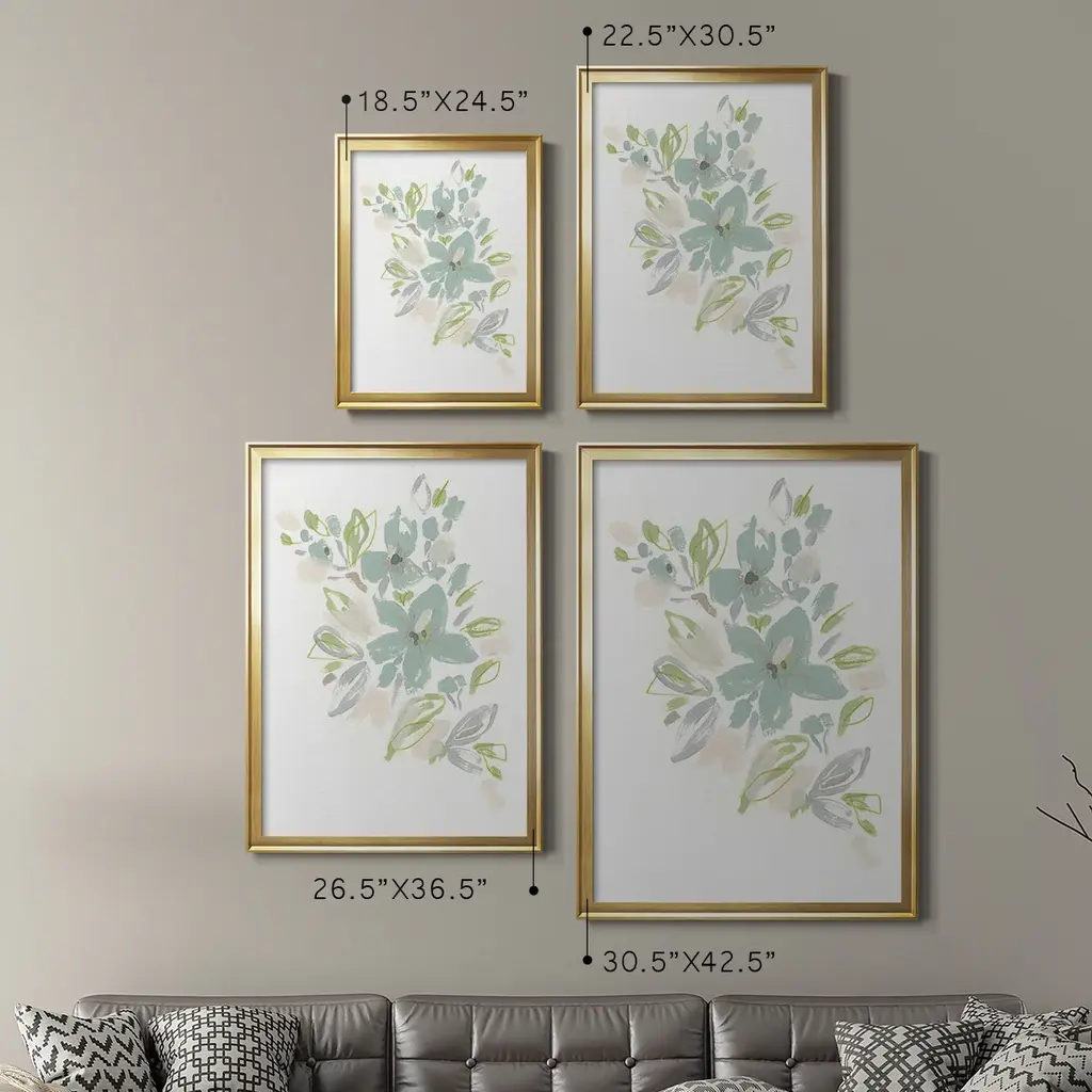 Seafoam Petals IV Premium Framed Print - Ready to Hang A Premium Framed Print created to last. Framed in distressed wood and available in an array of sizes and colors Featuring a beveled a solid wood stretcher bar, each piece comes ready to hand 4 SIZES AVAILABLE 30.5''X42.5'' - Overall Size 26.5'X36.5'' - Overall Size 22.5''x30.5'' - Overall Size 18.5''x24.5'' - Overall Size Each piece is made to order. Each piece comes with hanging hardware. Made in the USA Ready to Hang