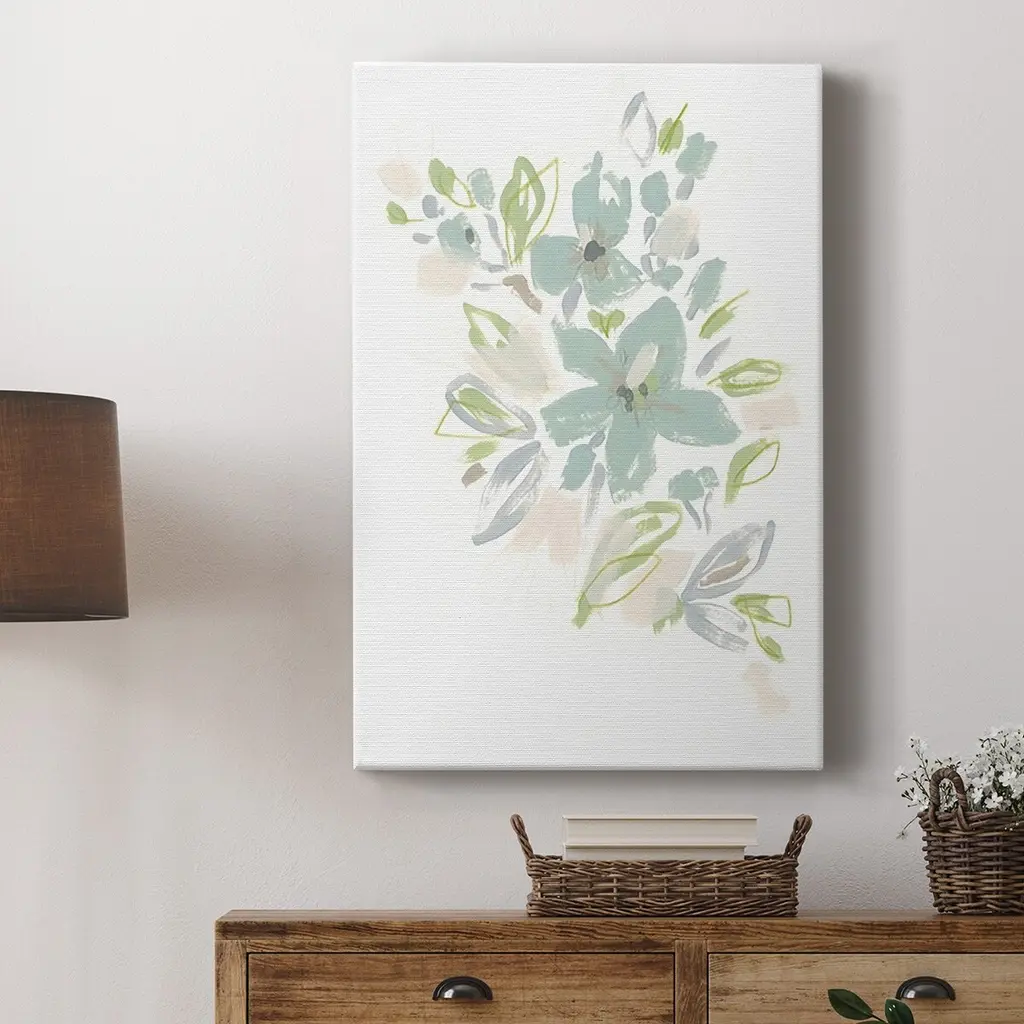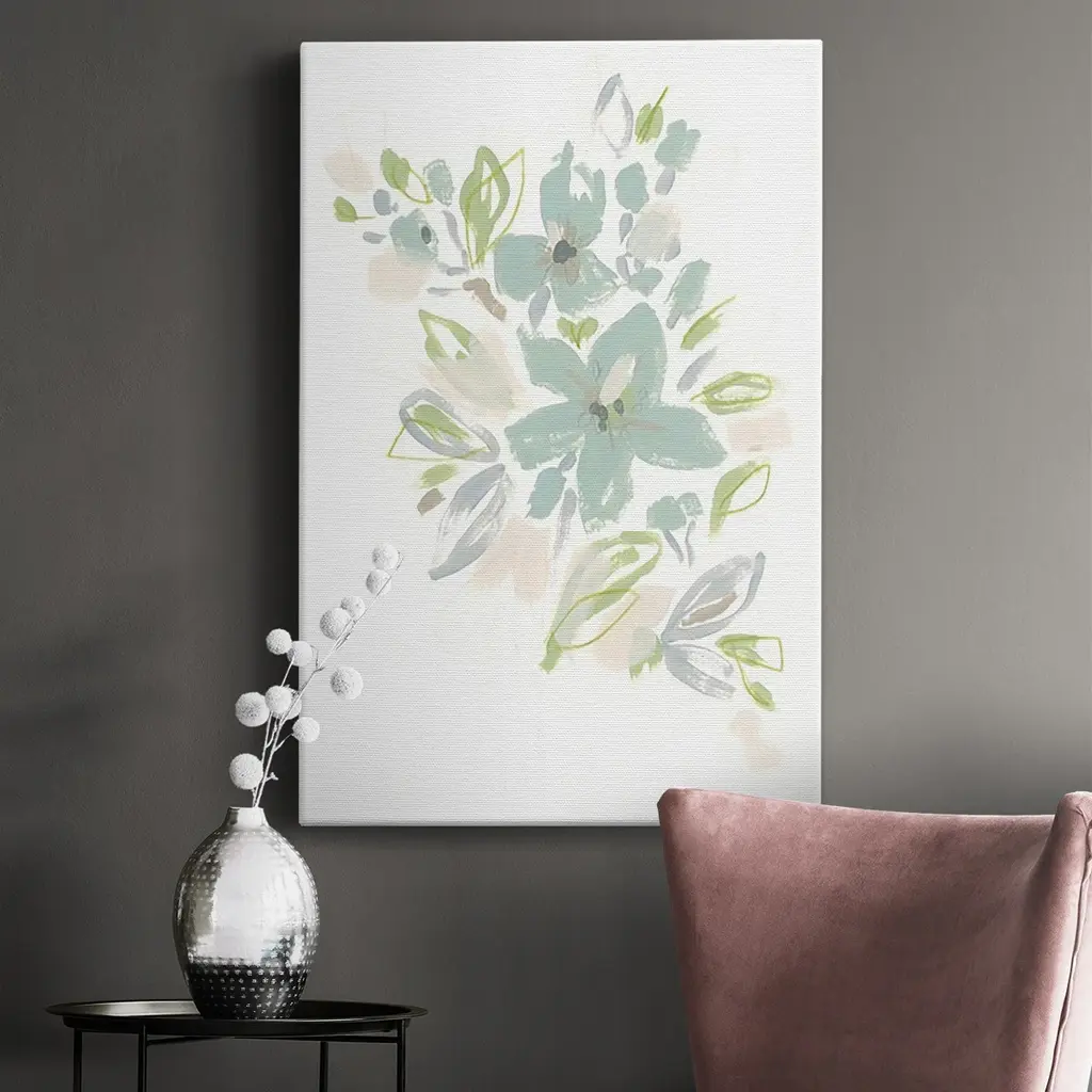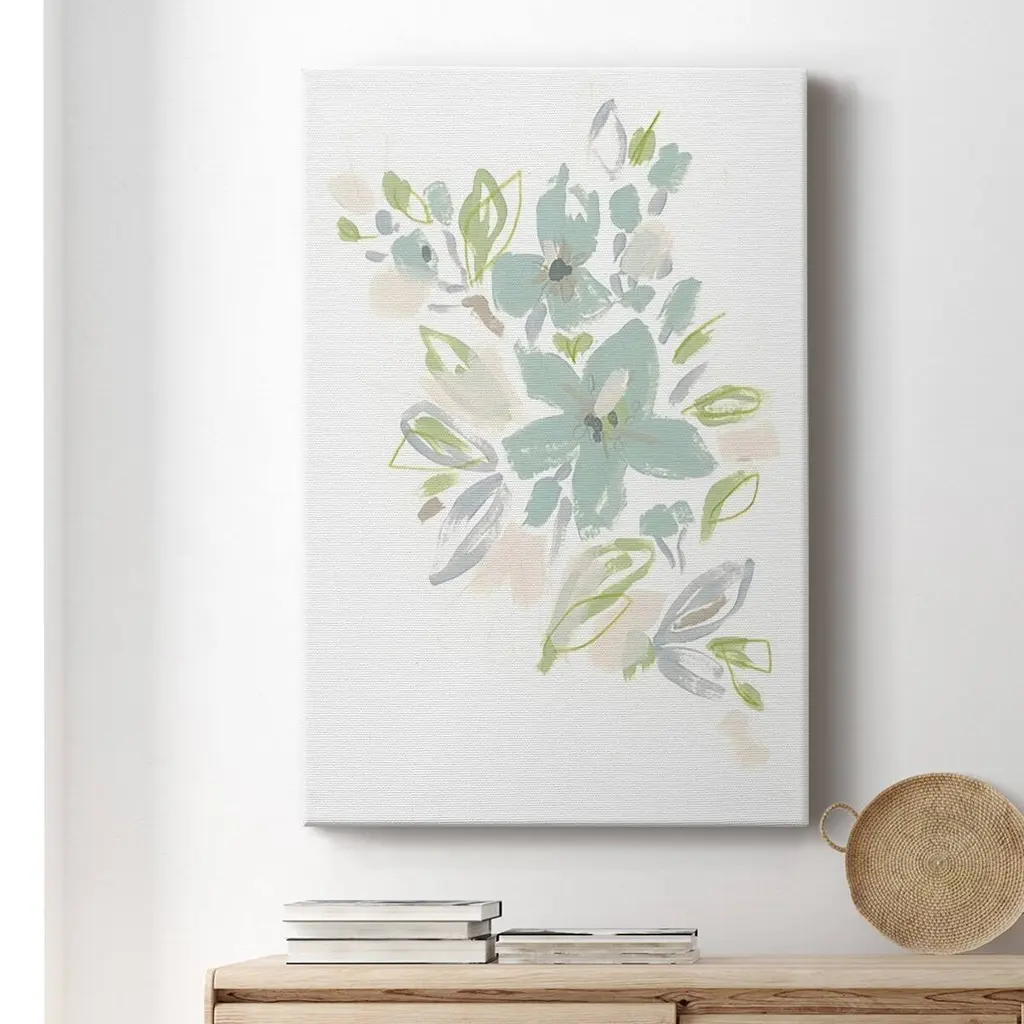 Seafoam Petals IV Premium Gallery Wrapped Canvas - Ready to Hang A premium hand stretched gallery wrapped canvas print created to last. Featuring a beveled a solid wood stretcher bar, each piece comes ready to hand 6 SIZES AVAILABLE 8''X12'' - Overall Size 12''X18'' - Overall Size 18''X27'' - Overall Size 24''x36'' - Overall Size 32''x48'' - Overall Size 40''x60'' - Overall Size Each piece is made to order. Built to Last Each piece comes ready to hang Solid wood stretcher Fade and Water resistant Made domestically