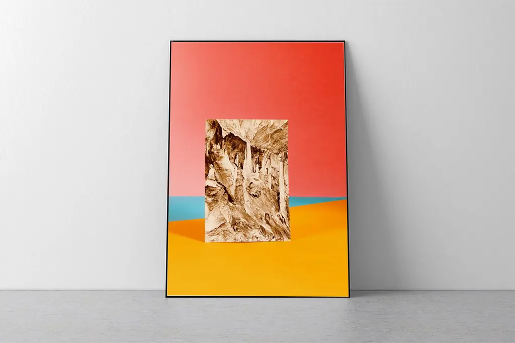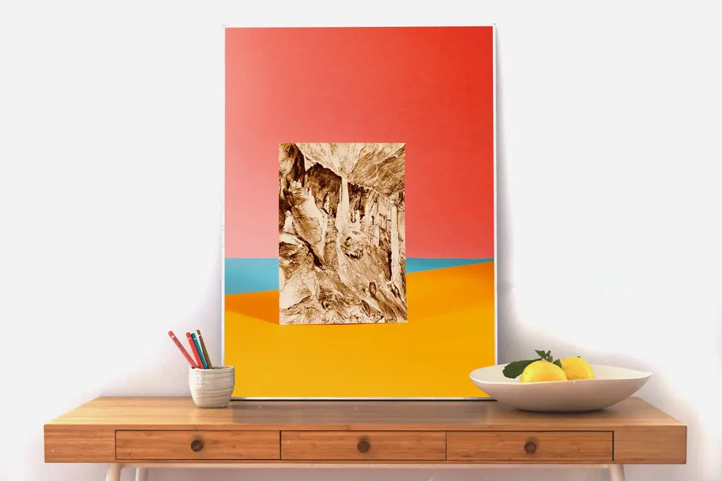 Seafront Landscape With Rocks, Conceptual Photography, Lively Colors Cave, 50x70 Cm Limited Edition