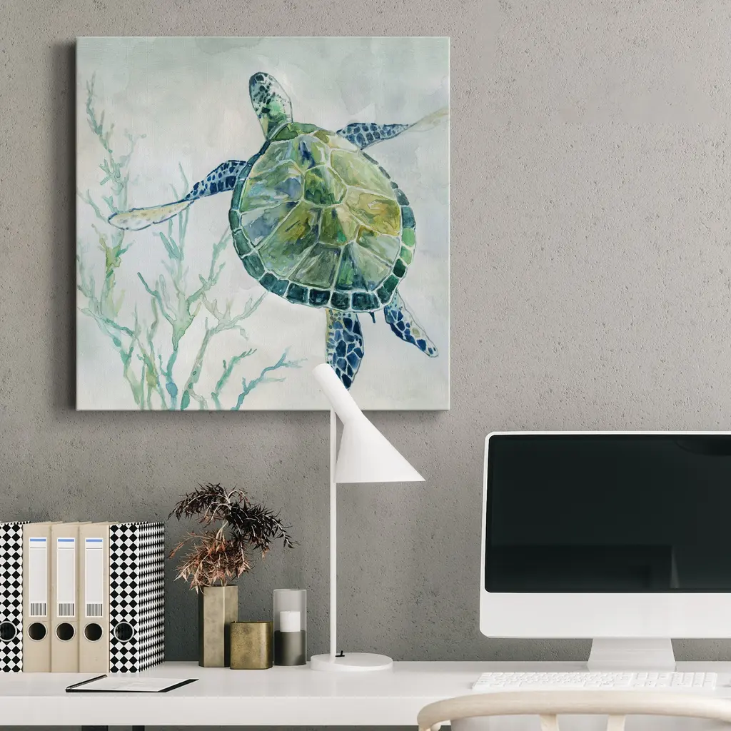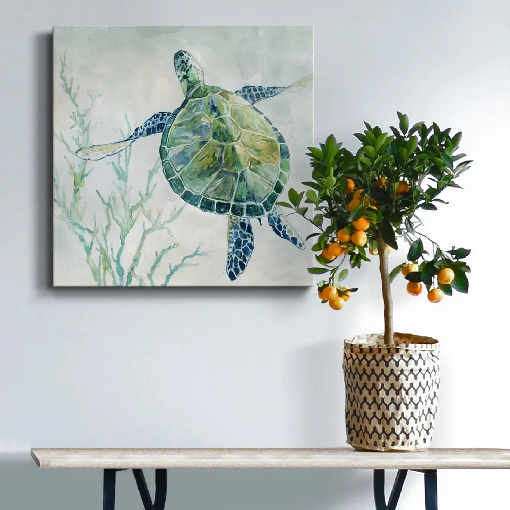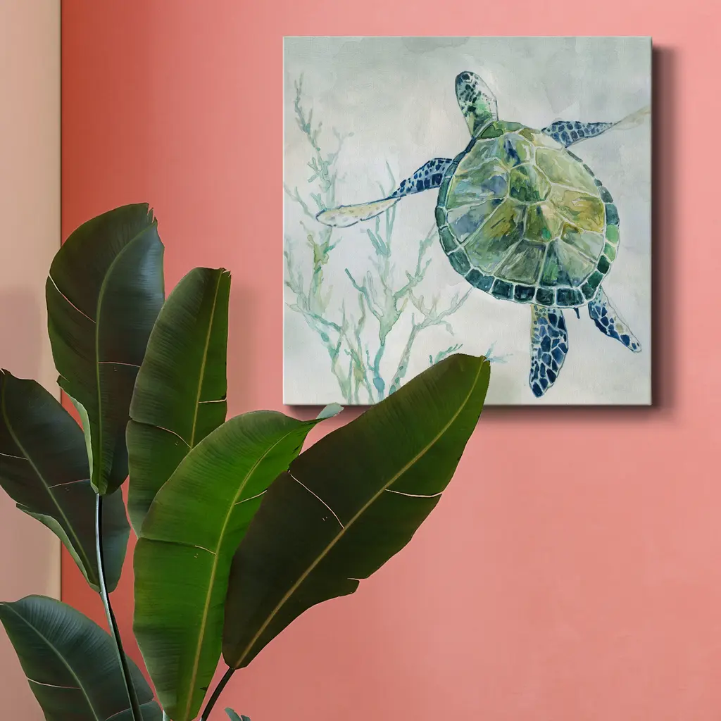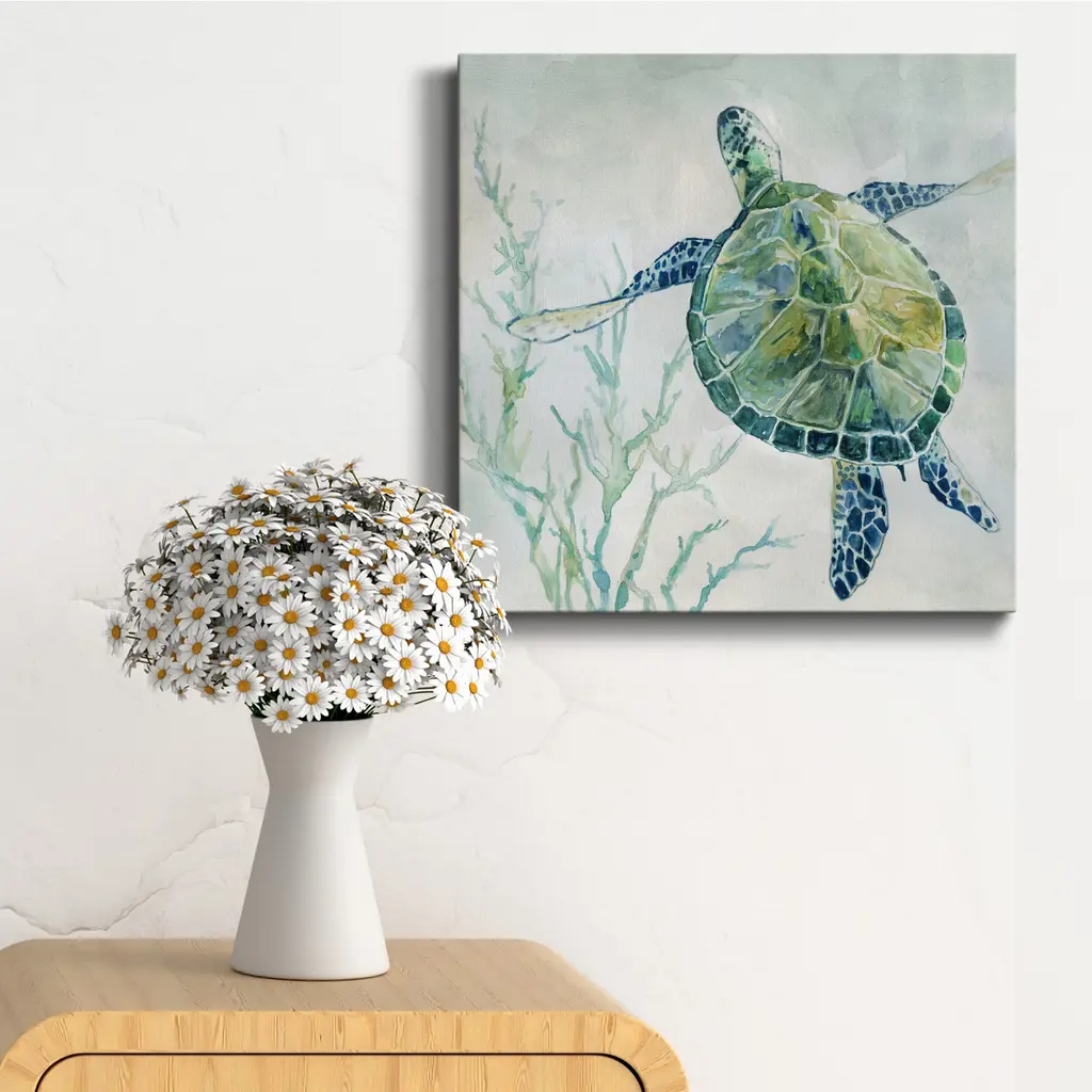 Seaglass Turtle II-Premium Gallery Wrapped Canvas - Ready to Hang A premium hand stretched gallery wrapped canvas print created to last. Featuring a beveled a solid wood stretcher bar, each piece comes ready to hand 5 SIZES AVAILABLE 10''X10'' - Overall Size 16''x16'' - Overall Size 24''x24'' - Overall Size 32''x32'' - Overall Size 40''x40'' - Overall Size Each piece is made to order. Built to Last Each piece comes ready to hang Solid wood stretcher Fade and Water resistant Made domestically