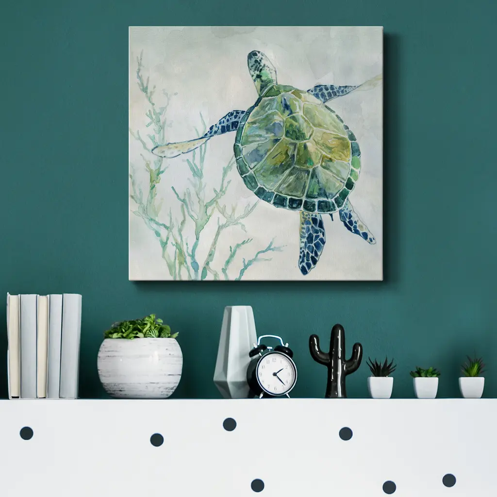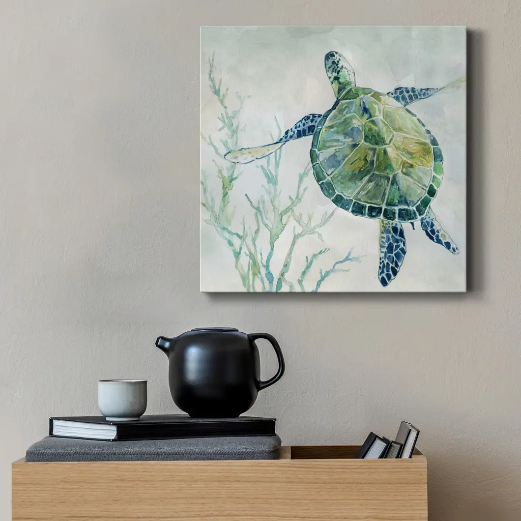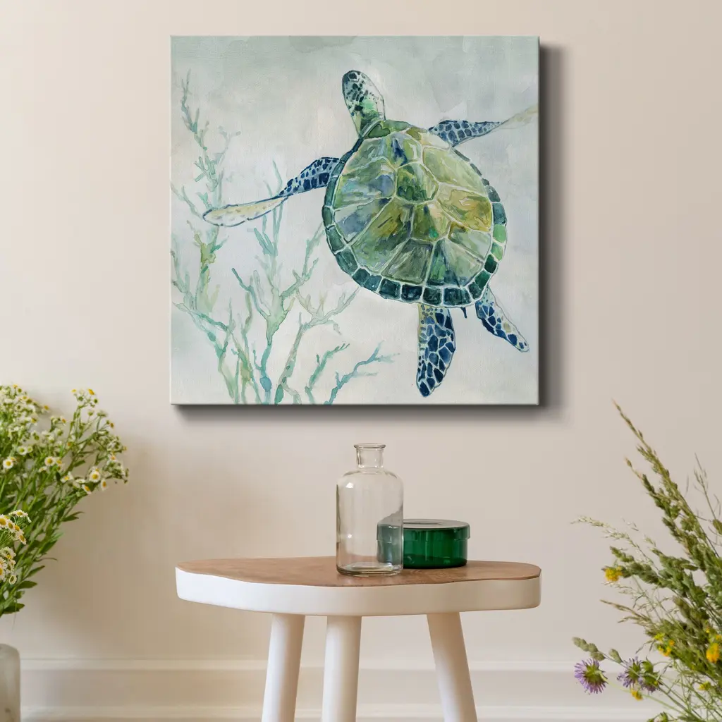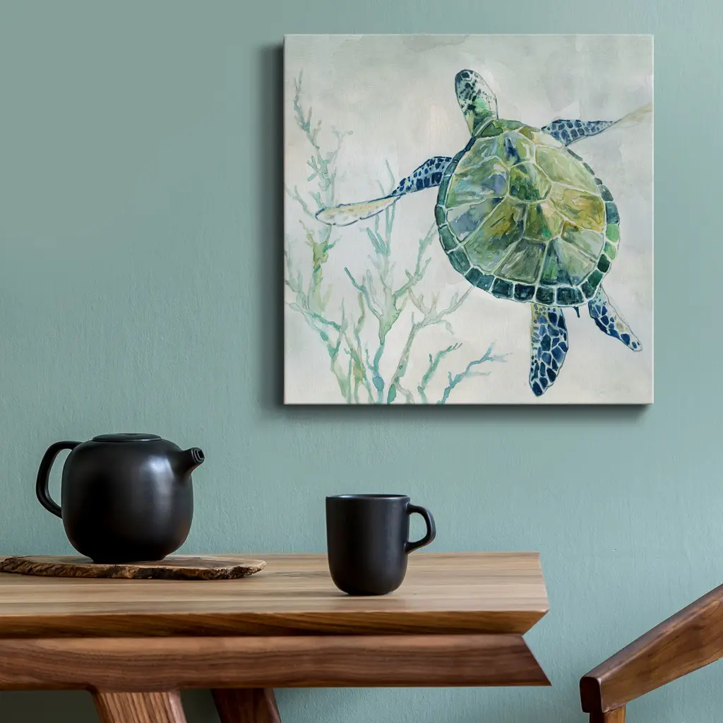 Seaglass Turtle II-Premium Gallery Wrapped Canvas - Ready to Hang A premium hand stretched gallery wrapped canvas print created to last. Featuring a beveled a solid wood stretcher bar, each piece comes ready to hand 5 SIZES AVAILABLE 10''X10'' - Overall Size 16''x16'' - Overall Size 24''x24'' - Overall Size 32''x32'' - Overall Size 40''x40'' - Overall Size Each piece is made to order. Built to Last Each piece comes ready to hang Solid wood stretcher Fade and Water resistant Made domestically