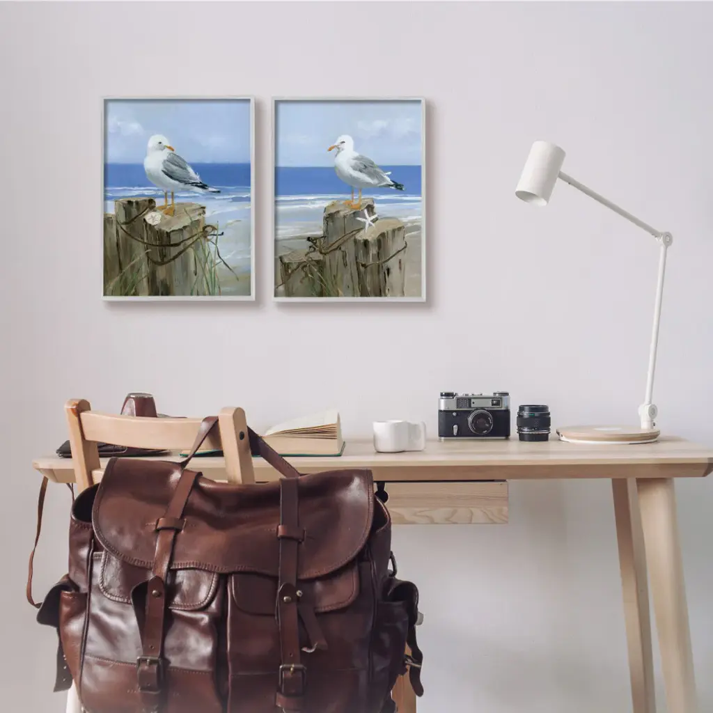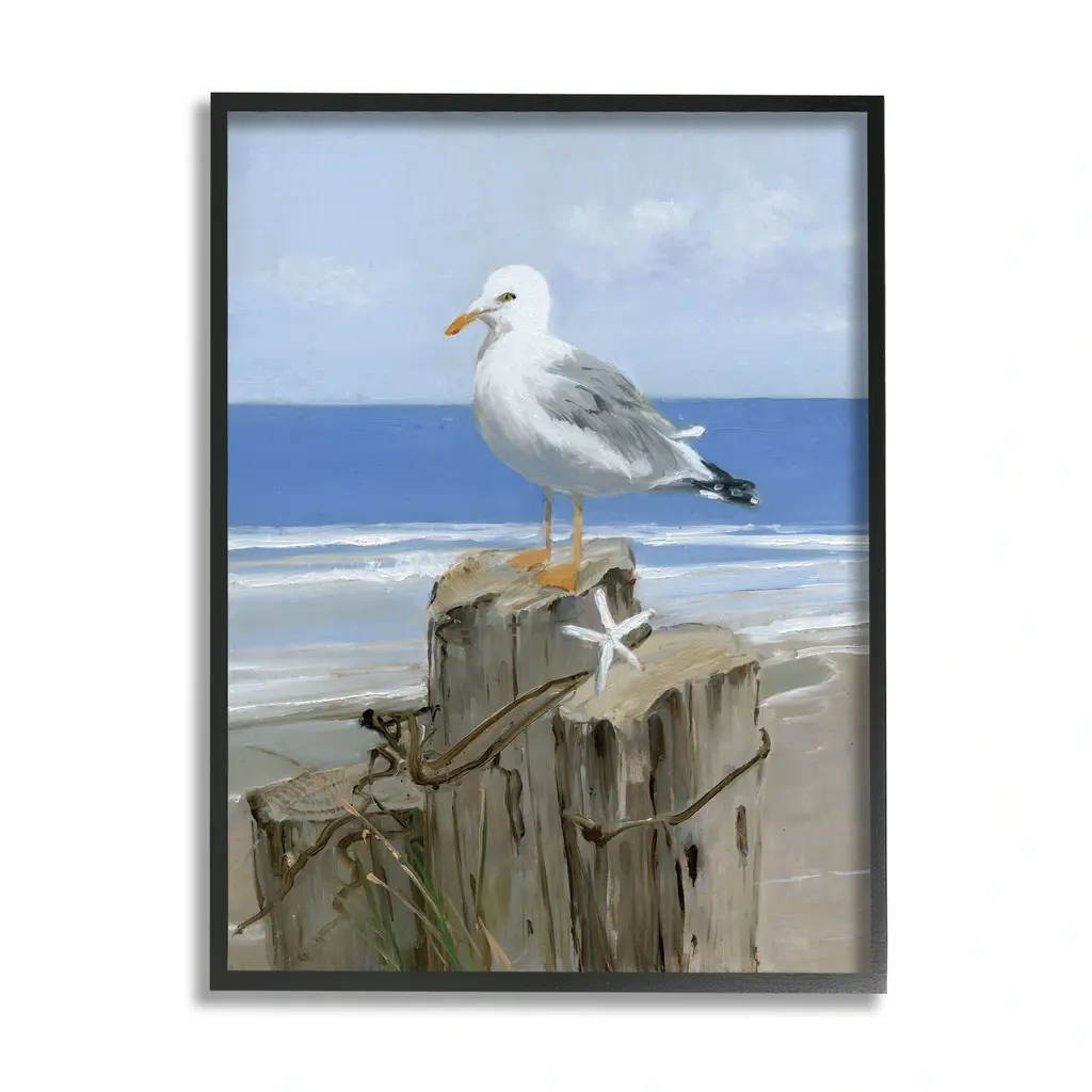 Seagulls Beach Shore Wooden Pillars Sanddollar Starfish Scene,11 X 14