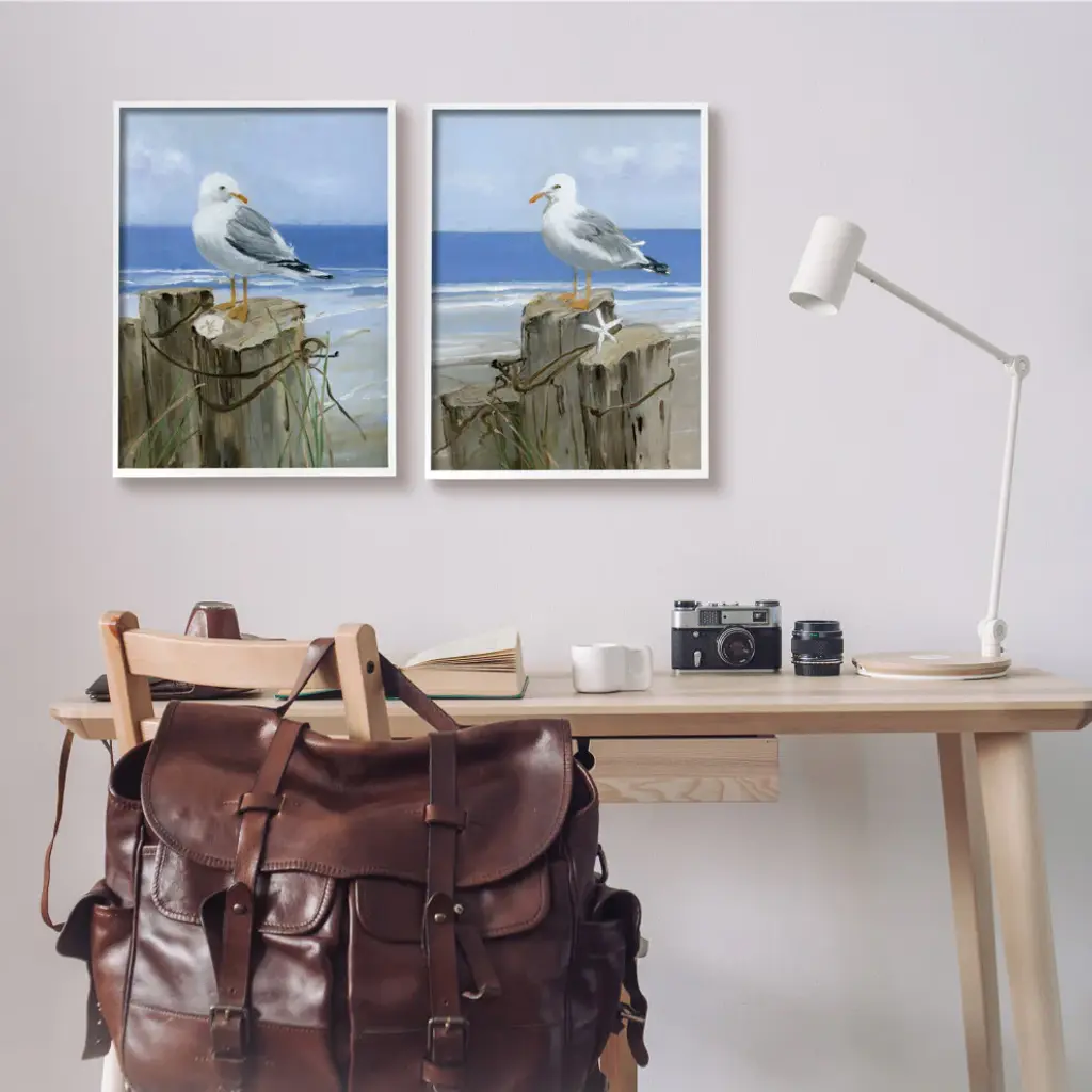 Seagulls Beach Shore Wooden Pillars Sanddollar Starfish Scene,16 X 20