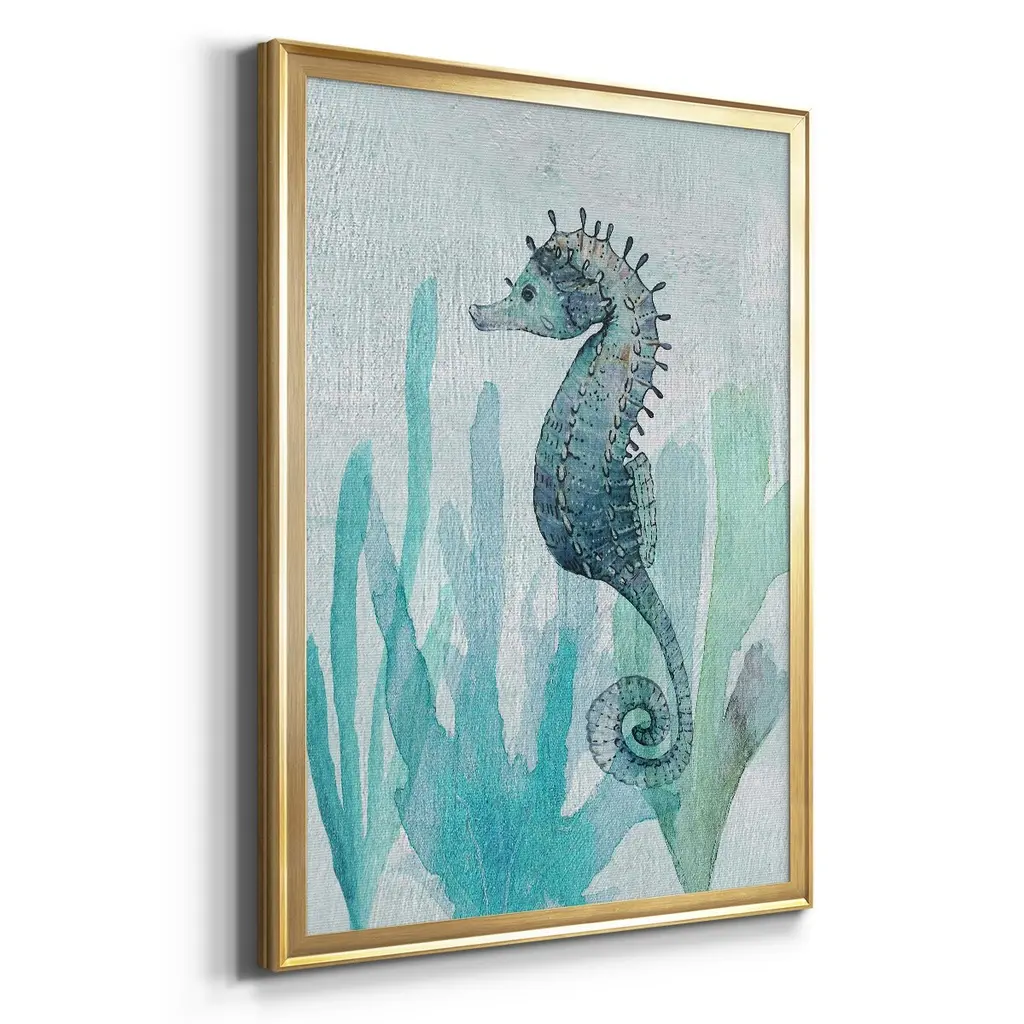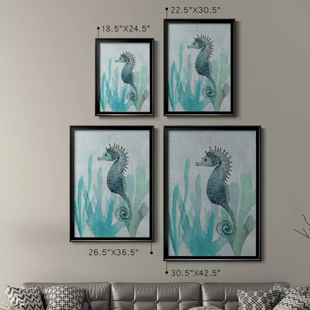 Seahorse II Premium Framed Print - Ready to Hang A Premium Framed Print created to last. Framed in distressed wood and available in an array of sizes and colors Featuring a beveled a solid wood stretcher bar, each piece comes ready to hand 4 SIZES AVAILABLE 30.5''X42.5'' - Overall Size 26.5'X36.5'' - Overall Size 22.5''x30.5'' - Overall Size 18.5''x24.5'' - Overall Size Each piece is made to order. Each piece comes with hanging hardware. Made in the USA Ready to Hang