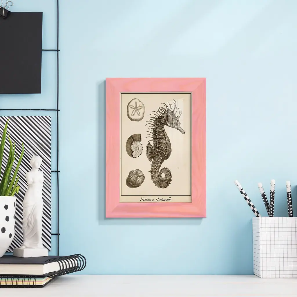 Seahorse Study I -EZ SWITCH Framed Print w/glass-Cherry Red A delightful, framed print. Featuring a solid wood frame with real wood glass. This premium print is giclee quality. In addition, every frame features a removable back and table top stand. This allows you to change your art in the future or to just stand the art on a table for a new look. We are sure you'll enjoy our new series of EZ SWITCH Framed Art. Solid Wood Frame Real Glass Removable / Replaceable Art Built in Tabletop Stand Sizes range from 4x6 up to 12x15 - buy just one or pair them up as sets as you see fit.