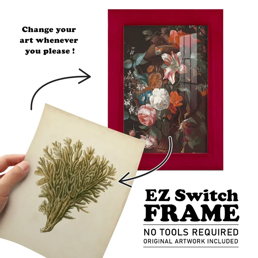 Sealife Collection II -EZ SWITCH Framed Print w/glass-Cherry Red A delightful, framed print. Featuring a solid wood frame with real wood glass. This premium print is giclee quality. In addition, every frame features a removable back and table top stand. This allows you to change your art in the future or to just stand the art on a table for a new look. We are sure you'll enjoy our new series of EZ SWITCH Framed Art. Solid Wood Frame Real Glass Removable / Replaceable Art Built in Tabletop Stand Sizes range from 4x6 up to 12x15 - buy just one or pair them up as sets as you see fit.