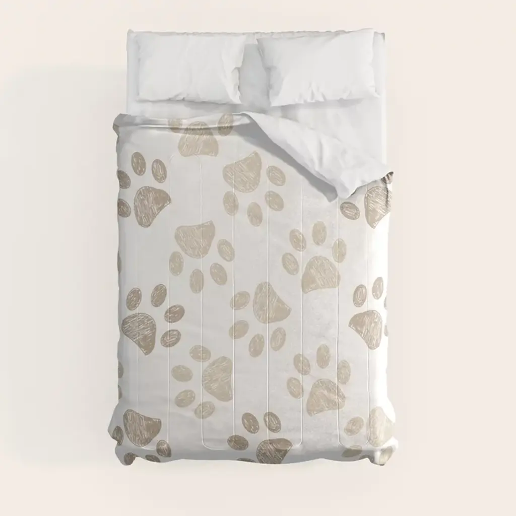 Seamless Pattern For Textile Design. Seamless Light Brown Colored Paw Print Background Comforter