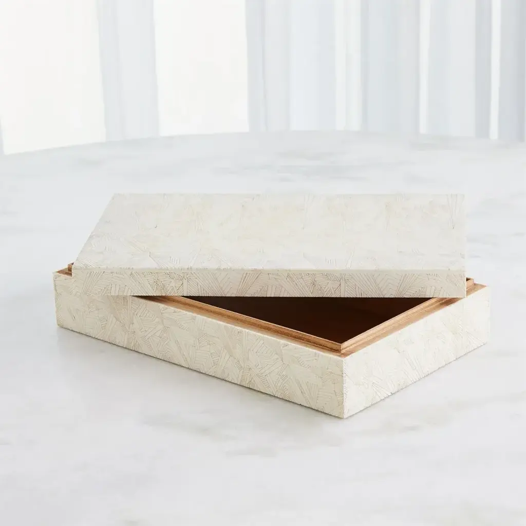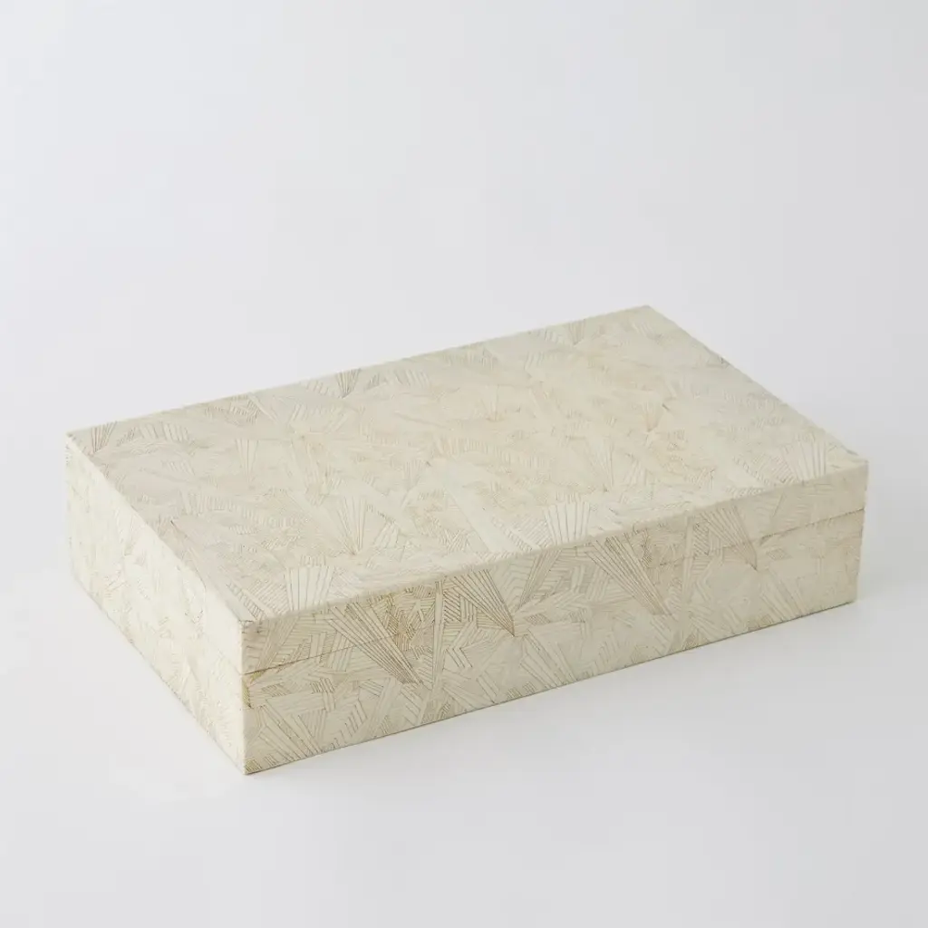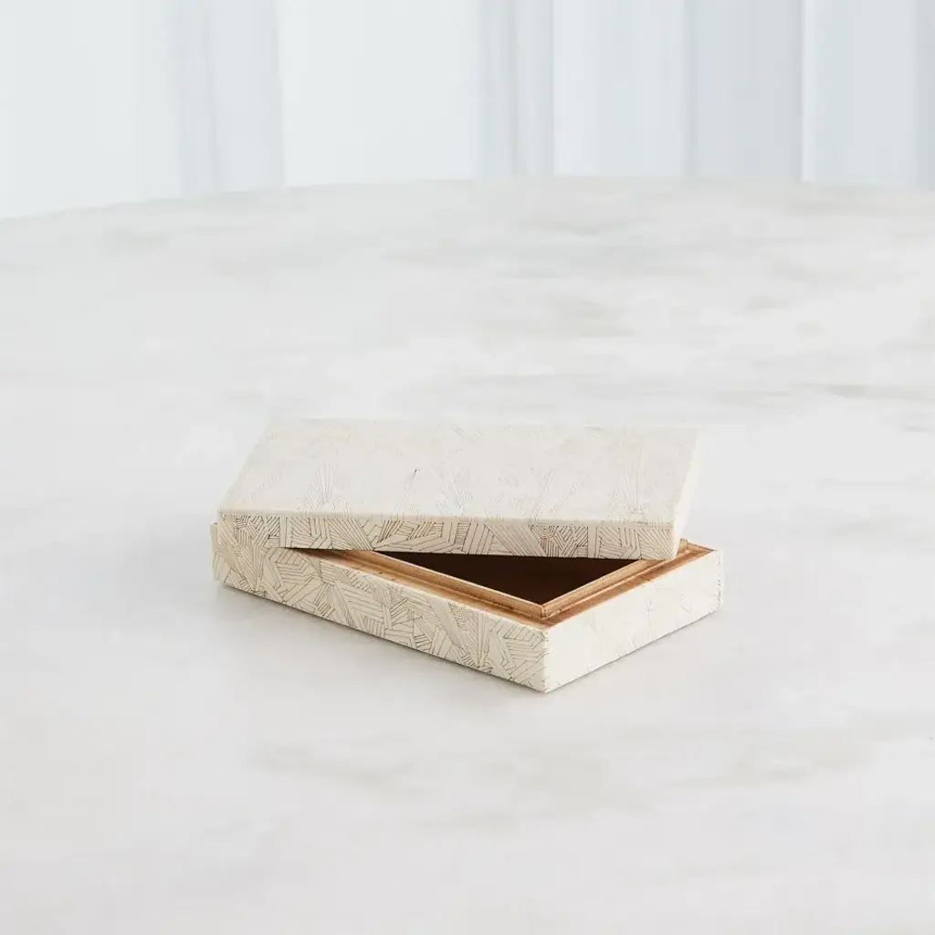 The Searchlight Boxes and Tray feature a captivating pattern inspired by an original hand-drawn sketch by our Creative Director, George Sellers. Handcrafted from resin in an elegant ivory finish, these pieces are not just storage; they are a testament to artistry and style. From a fashion forward perspective, Global Views offers accessories, furniture, statement lighting, and an assortment of rugs and mirrors to add beauty and joy to your home.