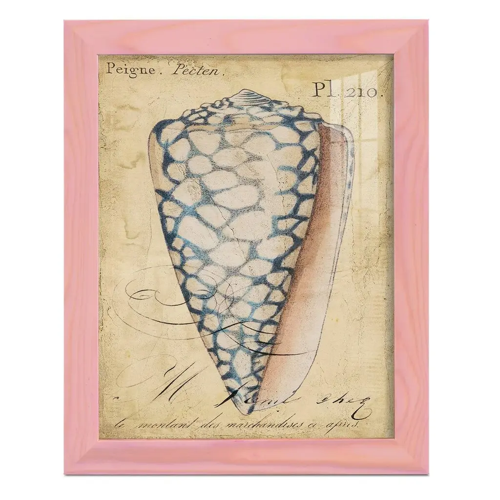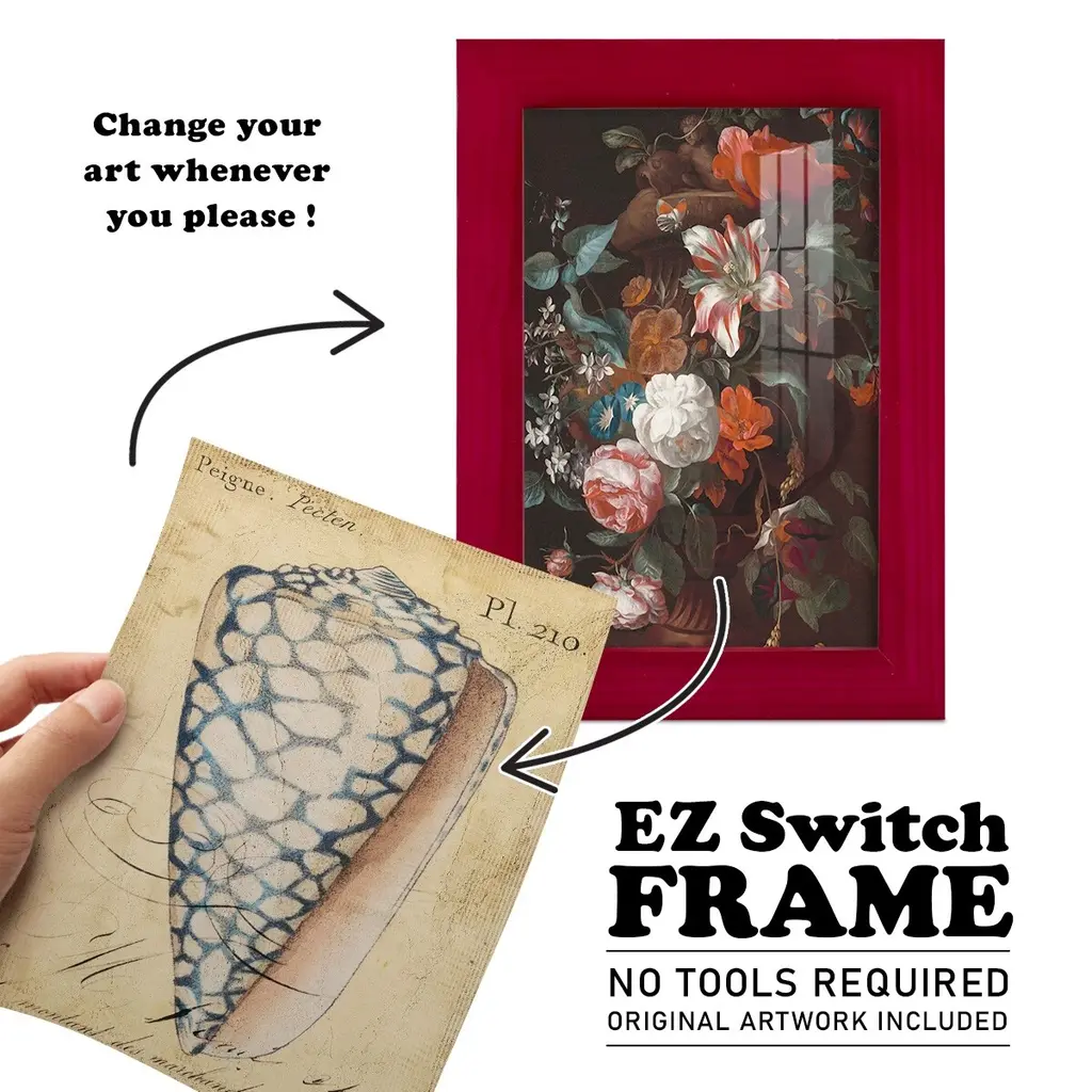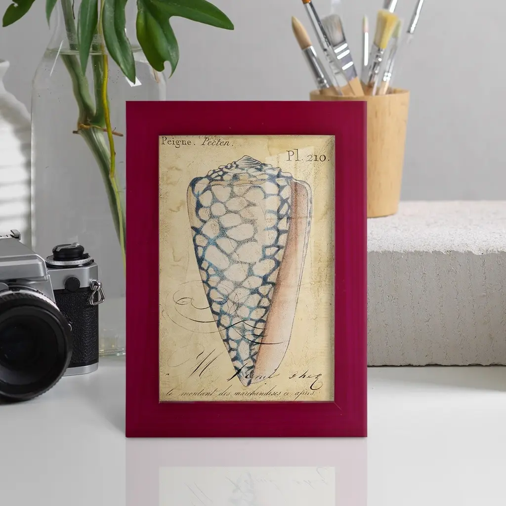 Seashell Ephemera IV -EZ SWITCH Framed Print w/glass-Cherry Red A delightful, framed print. Featuring a solid wood frame with real wood glass. This premium print is giclee quality. In addition, every frame features a removable back and table top stand. This allows you to change your art in the future or to just stand the art on a table for a new look. We are sure you'll enjoy our new series of EZ SWITCH Framed Art. Solid Wood Frame Real Glass Removable / Replaceable Art Built in Tabletop Stand Sizes range from 4x6 up to 12x15 - buy just one or pair them up as sets as you see fit.