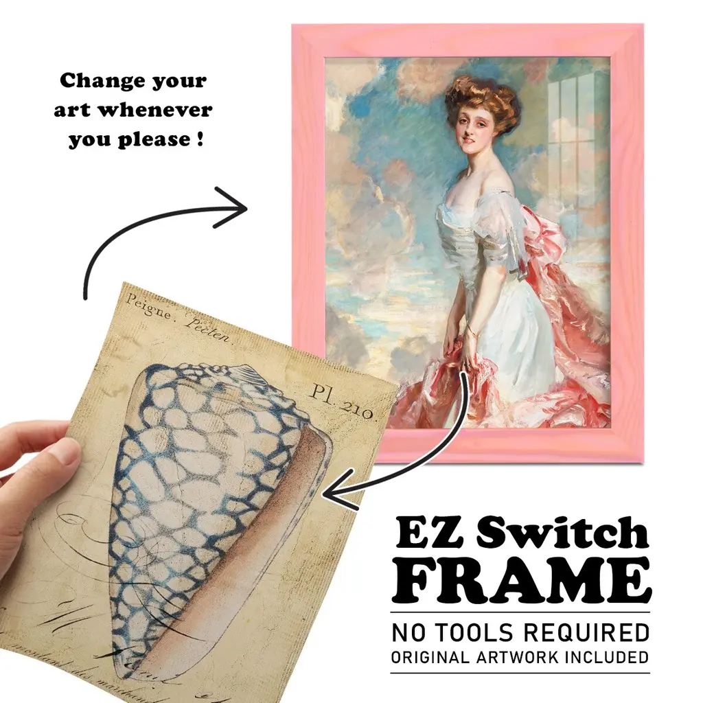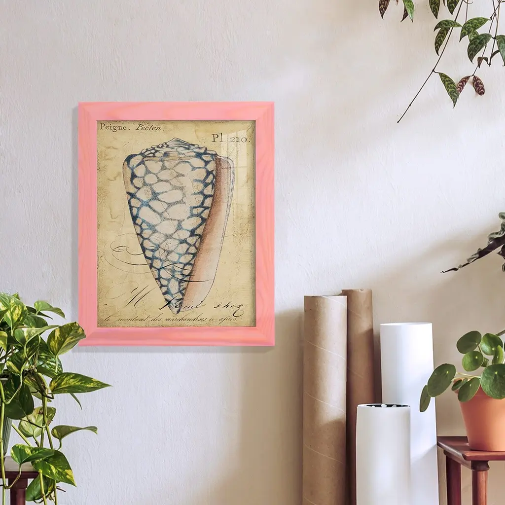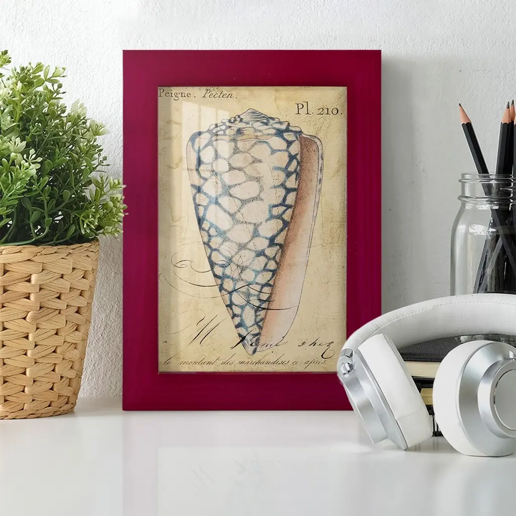 Seashell Ephemera IV -EZ SWITCH Framed Print w/glass-Cherry Red A delightful, framed print. Featuring a solid wood frame with real wood glass. This premium print is giclee quality. In addition, every frame features a removable back and table top stand. This allows you to change your art in the future or to just stand the art on a table for a new look. We are sure you'll enjoy our new series of EZ SWITCH Framed Art. Solid Wood Frame Real Glass Removable / Replaceable Art Built in Tabletop Stand Sizes range from 4x6 up to 12x15 - buy just one or pair them up as sets as you see fit.