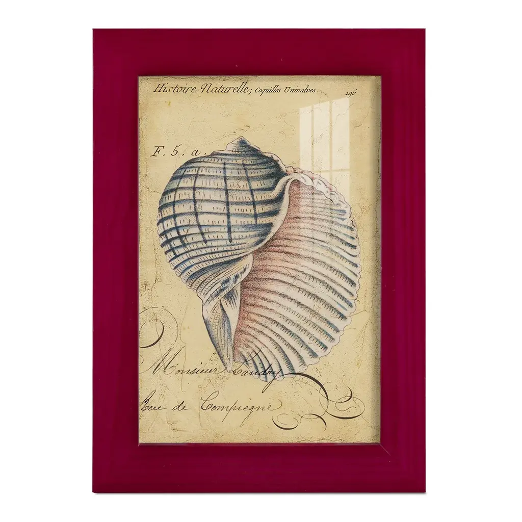 Seashell Ephemera V -EZ SWITCH Framed Print w/glass-Cherry Red A delightful, framed print. Featuring a solid wood frame with real wood glass. This premium print is giclee quality. In addition, every frame features a removable back and table top stand. This allows you to change your art in the future or to just stand the art on a table for a new look. We are sure you'll enjoy our new series of EZ SWITCH Framed Art. Solid Wood Frame Real Glass Removable / Replaceable Art Built in Tabletop Stand Sizes range from 4x6 up to 12x15 - buy just one or pair them up as sets as you see fit.
