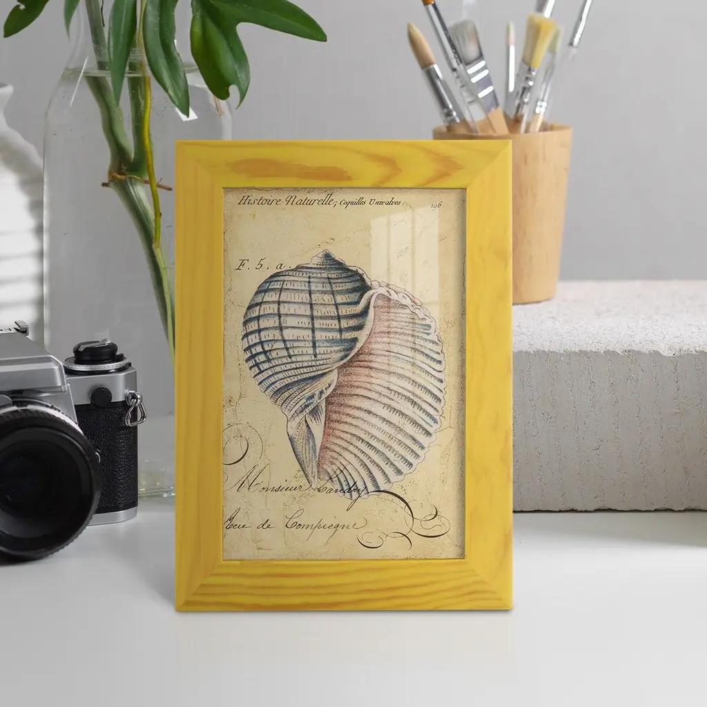 Seashell Ephemera V -Framed Print W/glass-Cherry Red - 12x15 - Yellow
