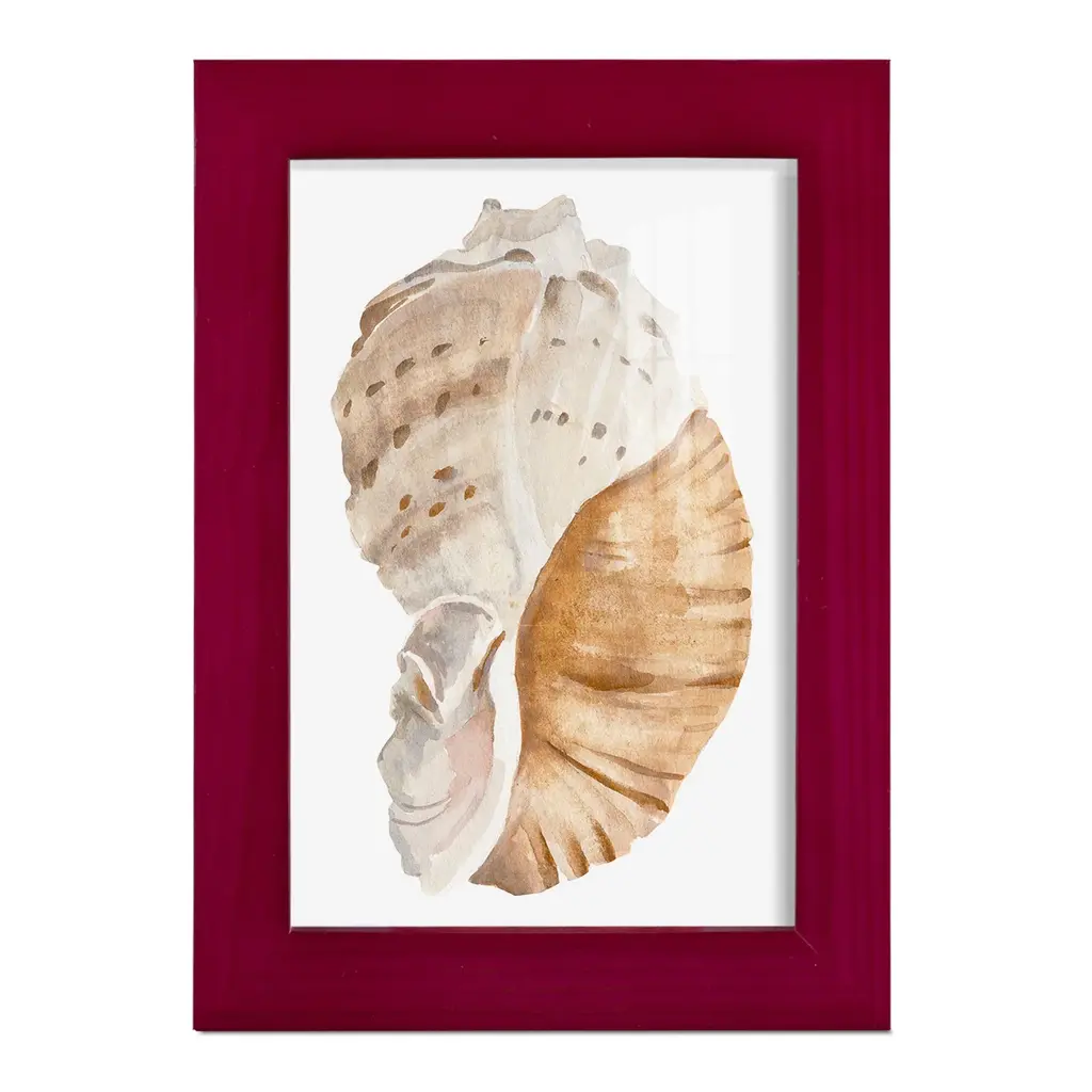 Seashell I -EZ SWITCH Framed Print w/glass-Cherry Red A delightful, framed print. Featuring a solid wood frame with real wood glass. This premium print is giclee quality. In addition, every frame features a removable back and table top stand. This allows you to change your art in the future or to just stand the art on a table for a new look. We are sure you'll enjoy our new series of EZ SWITCH Framed Art. Solid Wood Frame Real Glass Removable / Replaceable Art Built in Tabletop Stand Sizes range from 4x6 up to 12x15 - buy just one or pair them up as sets as you see fit.