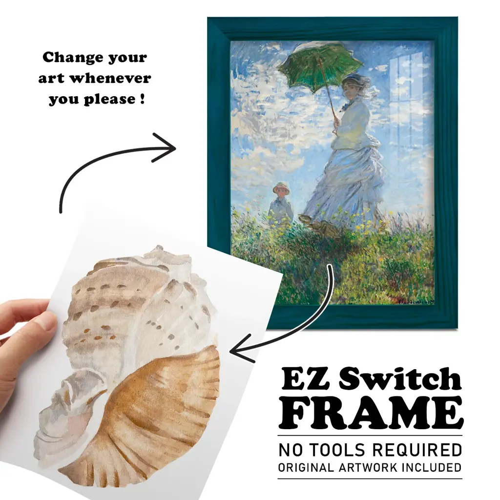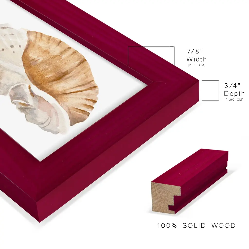 Seashell I -EZ SWITCH Framed Print w/glass-Cherry Red A delightful, framed print. Featuring a solid wood frame with real wood glass. This premium print is giclee quality. In addition, every frame features a removable back and table top stand. This allows you to change your art in the future or to just stand the art on a table for a new look. We are sure you'll enjoy our new series of EZ SWITCH Framed Art. Solid Wood Frame Real Glass Removable / Replaceable Art Built in Tabletop Stand Sizes range from 4x6 up to 12x15 - buy just one or pair them up as sets as you see fit.