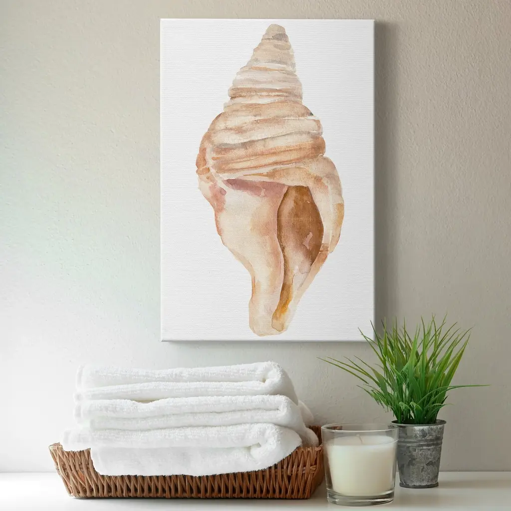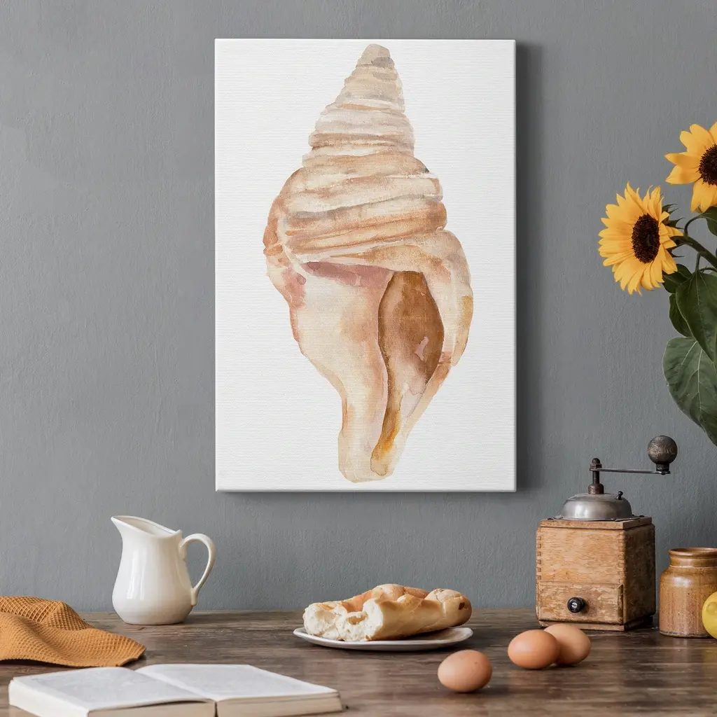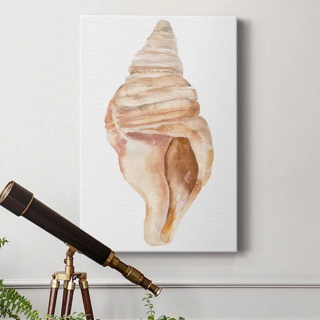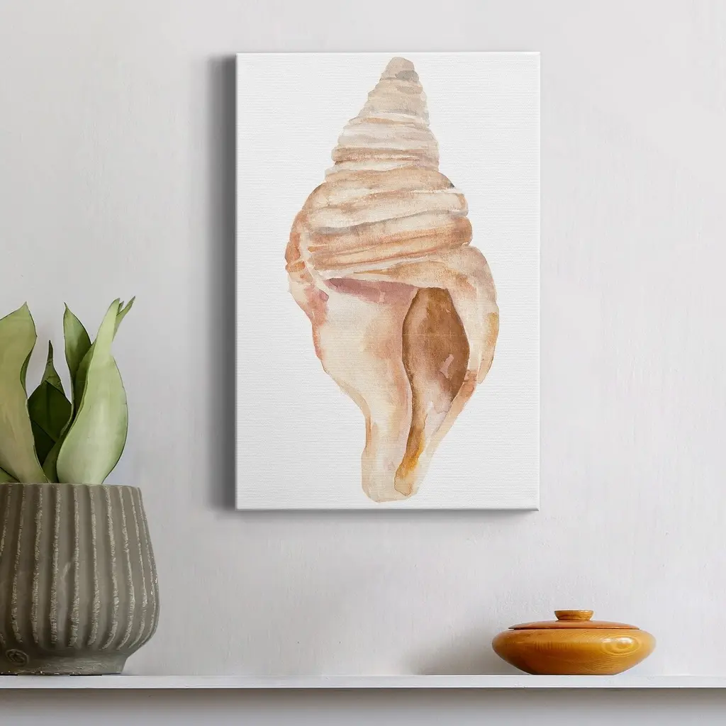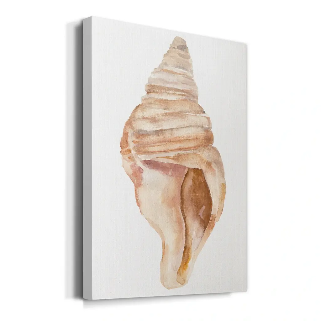 Seashell II Premium Gallery Wrapped Canvas - Ready to Hang A premium hand stretched gallery wrapped canvas print created to last. Featuring a beveled a solid wood stretcher bar, each piece comes ready to hand 5 SIZES AVAILABLE 8''X12'' - Overall Size 16'X20'' - Overall Size 24''x32'' - Overall Size 30''x40'' - Overall Size 36''x48'' - Overall Size Each piece is made to order. Built to Last Each piece comes ready to hang Solid wood stretcher Fade and Water resistant Made domestically
