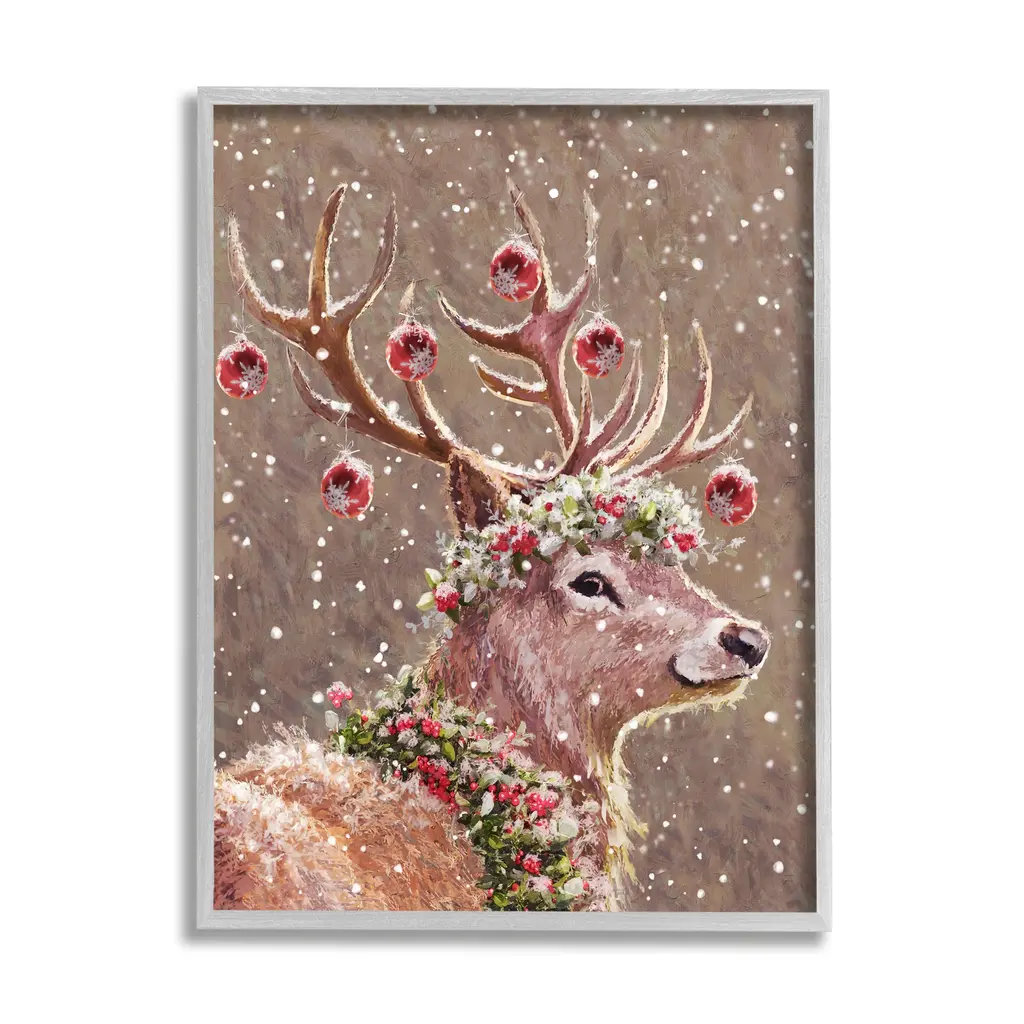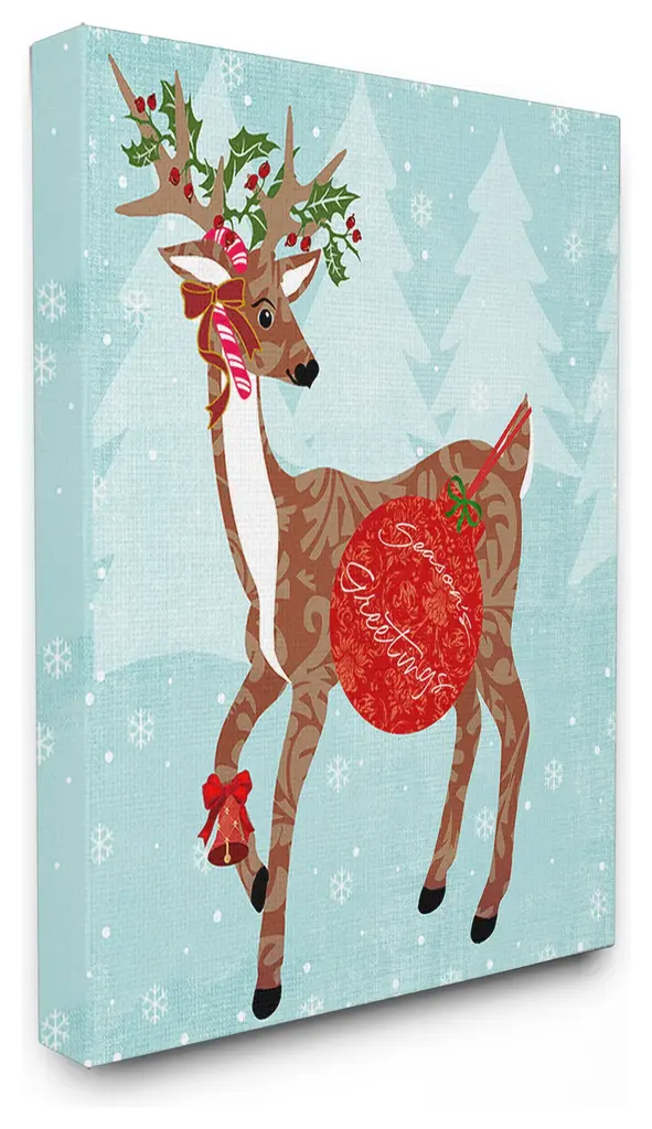 Seasons Greetings With Reindeer Canvas, 16"x1.5"x20"