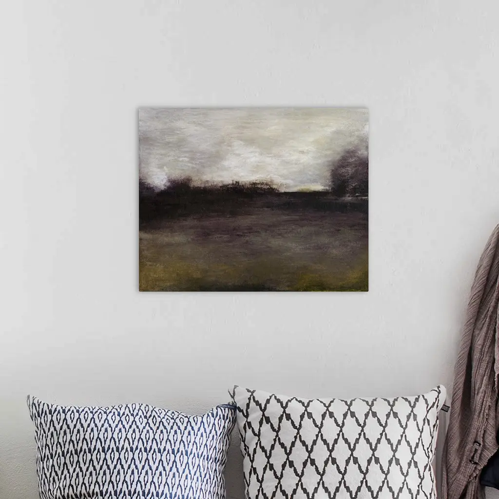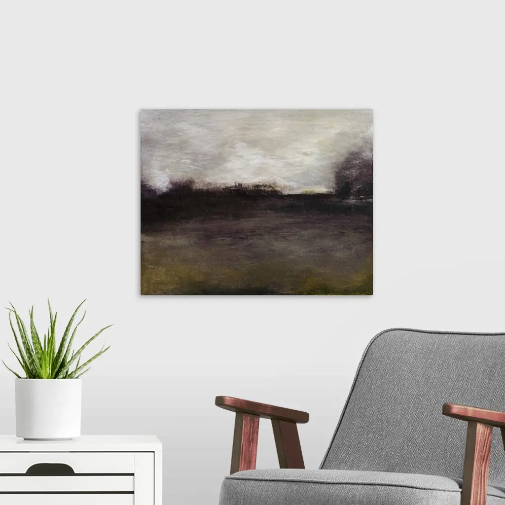 Ethereal abstract painting in somber earth-tones.