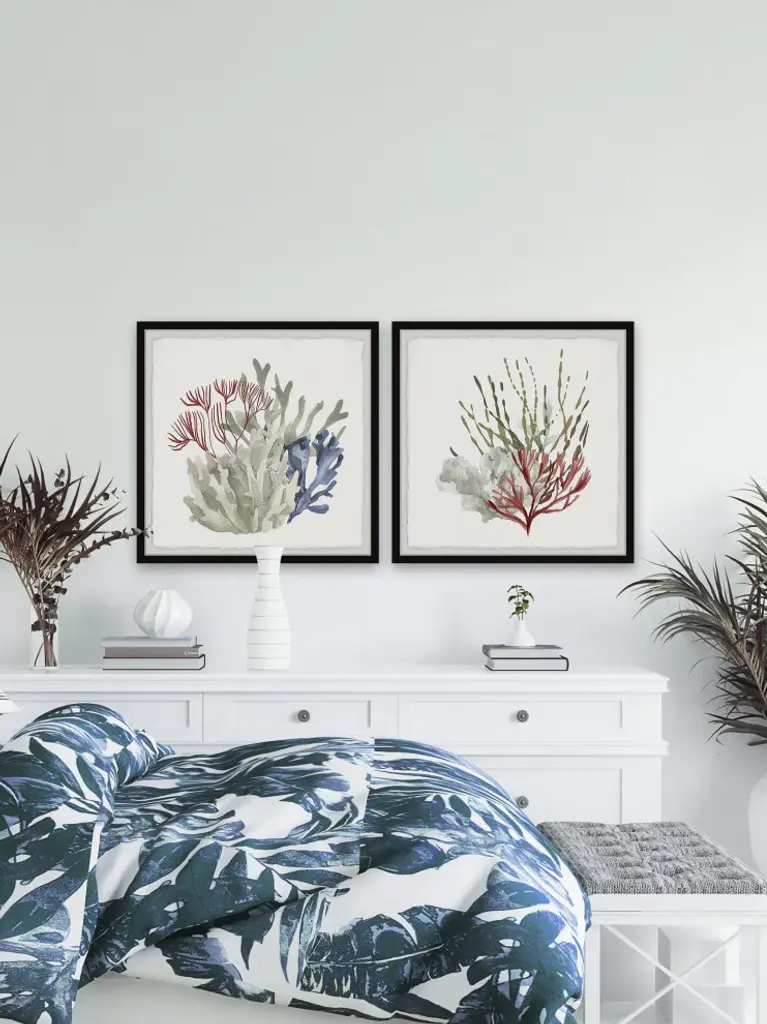 Seaweed And Corals Diptych, 2-Piece Set, 12x12 Panels